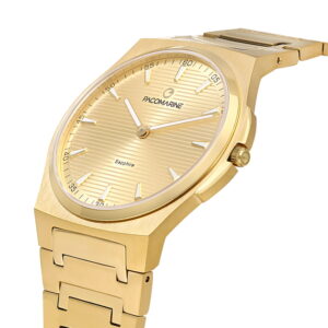 Klasik zarafeti modern detaylarla buluşturan PACOMARINE PM.23210.04, Roma rakamlı kadranı ve gold–lacivert renk uyumuyla feminen şıklığın güçlü bir temsilcisidir. İnce ölçüleri ve estetik tasarımı sayesinde bilekte adeta takı gibi duran bu model, zamansız stil arayan kadınlar için özel olarak tasarlanmıştır.