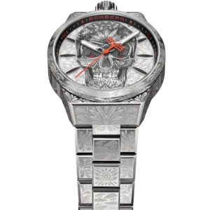 Bomberg Bolt-68 Neo Dövme Kafatası Sınırlı Üretim BF43H3SS.07-2.12 Saati. İki ikonik sembolün –kafatası ve dövmelerin– muhteşem birleşimi, ilham verici tasarım ve eşsiz gerçekçilikle ifade ediliyor. Kadran üzerindeki kabartma motif, kasa ve bileziğin üzerindeki gravür ustalığı: saatin kendisi, canlanmış bir dövme sanatçısının tuvali.