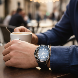 Spor ve Şıklık: Metalik gri kasa ve bilezik, siyah kadranla birleşerek güçlü bir görünüm yaratır.