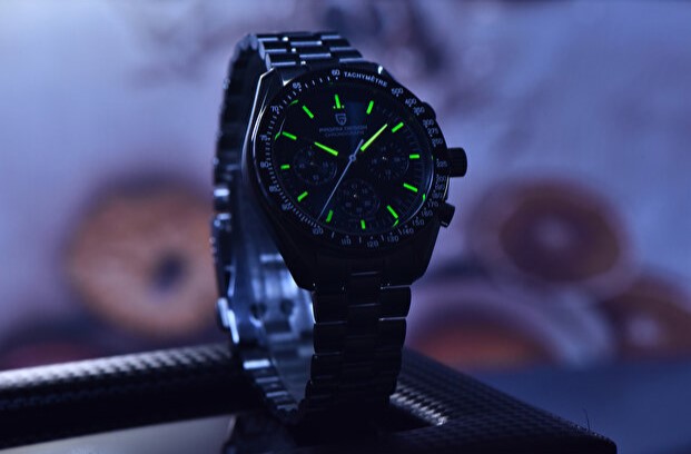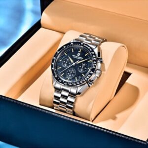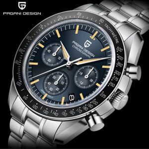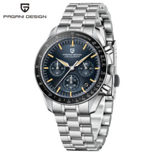 Pagani Design PD-1701 Speedmaster Moonwatch, efsanevi kronograf stilini modern teknolojiyle buluşturan güçlü bir modeldir. Tamamen gümüş çelik kasa ve bilezik yapısıyla sade ama etkileyici bir görünüm sunar.