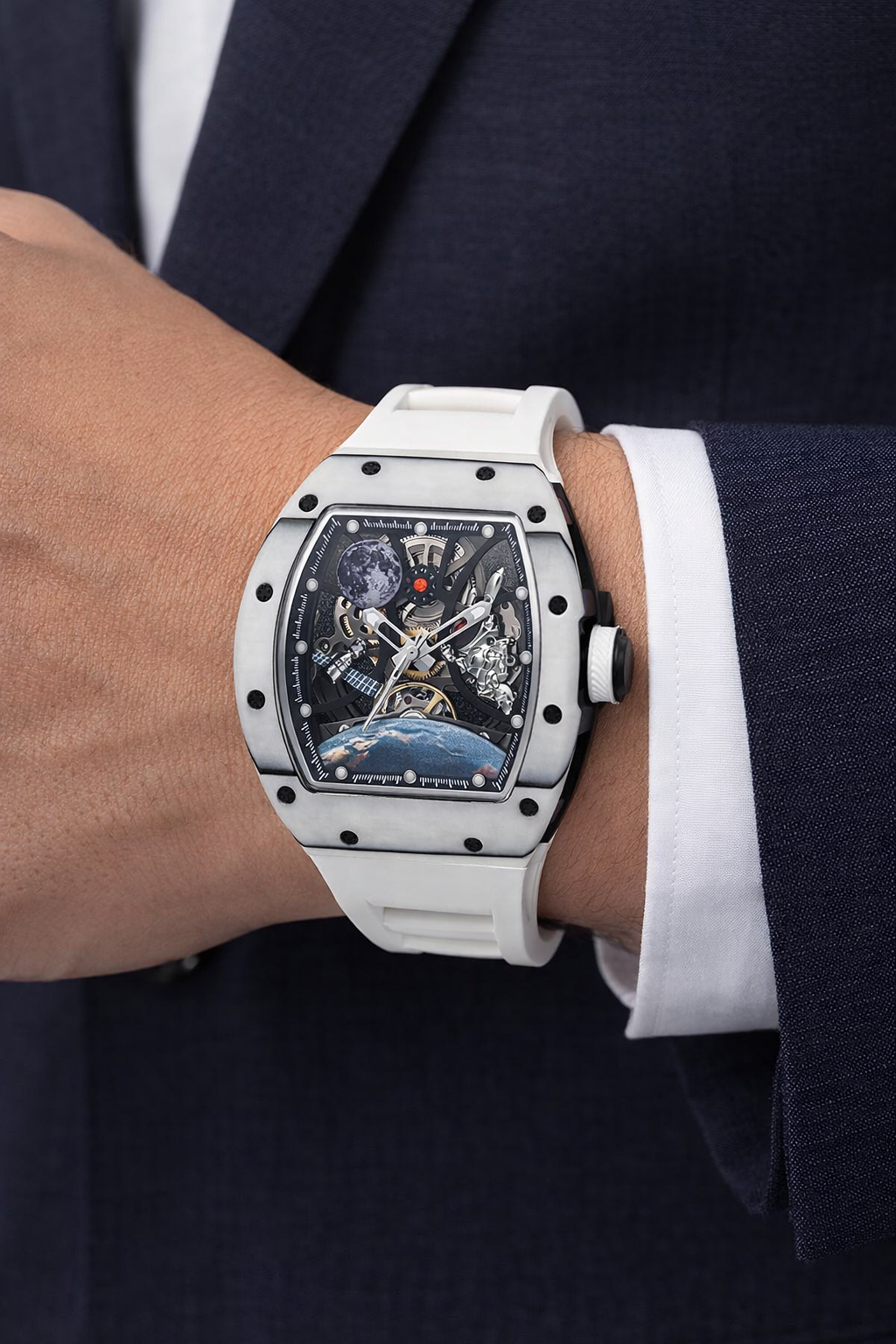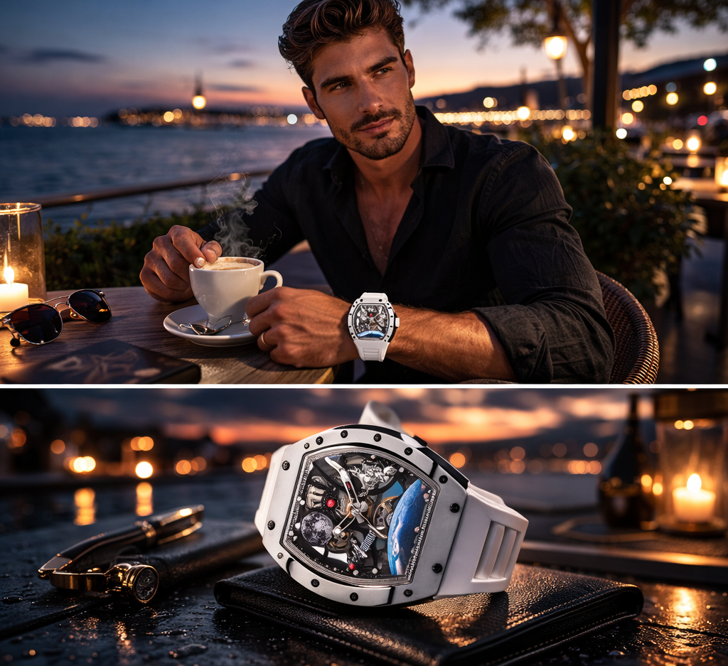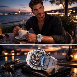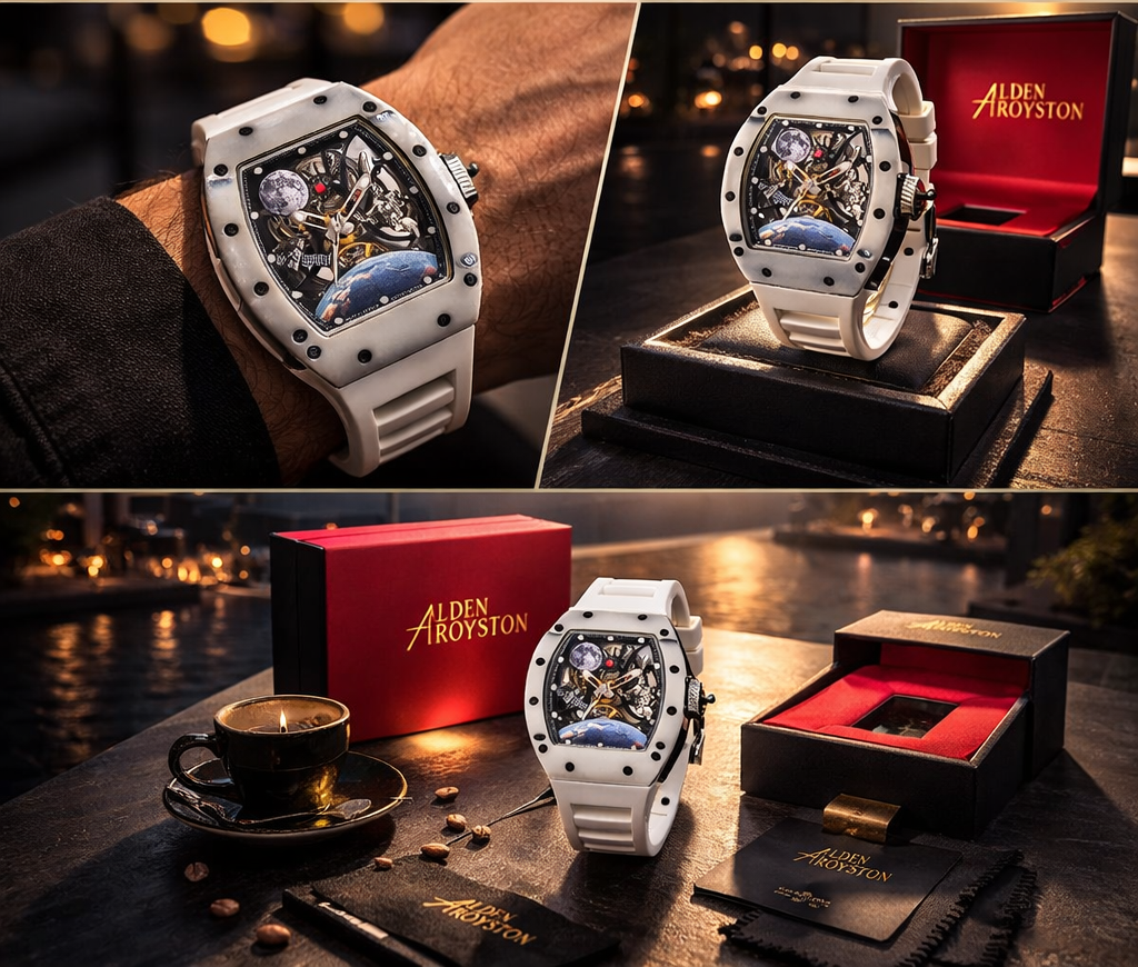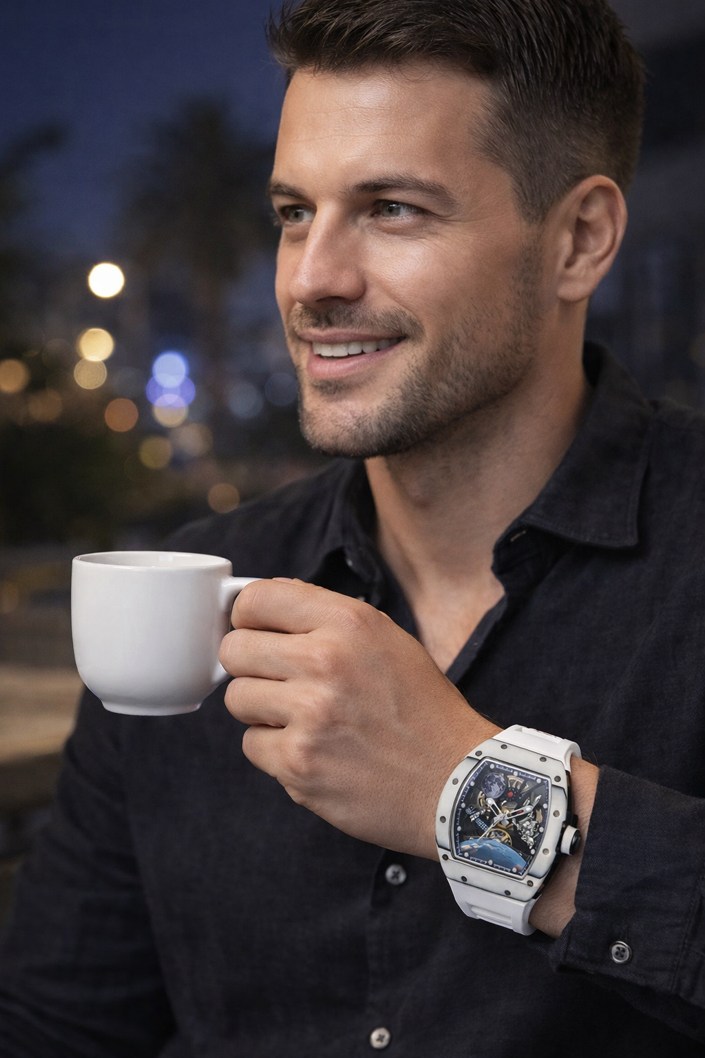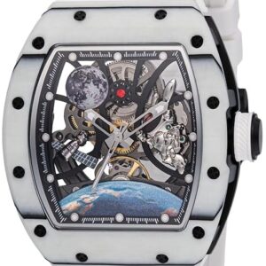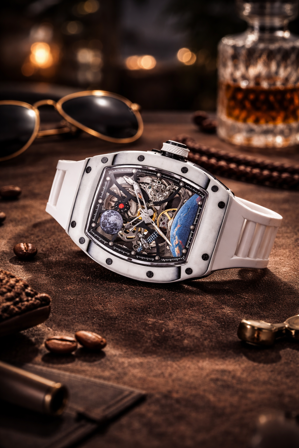 Bu cesur saat, fütüristik mühendisliği ham tasarımla birleştiriyor. Tonneau şeklindeki kasa, her bir dişliyi, köprüyü ve mekanizmanın mekanik nabzını sergileyen tamamen iskeletleştirilmiş bir kadranı barındırıyor. Endüstriyel tasarım dili, keskin açılar, açıkta kalan vidalar ve metalik kontrastlarla vurgulanıyor. Dayanıklı kauçuk kayışıyla birleştiğinde, sadece bir saat değil; geleneklere meydan okuyanlar için mekanik bir ifade biçimi