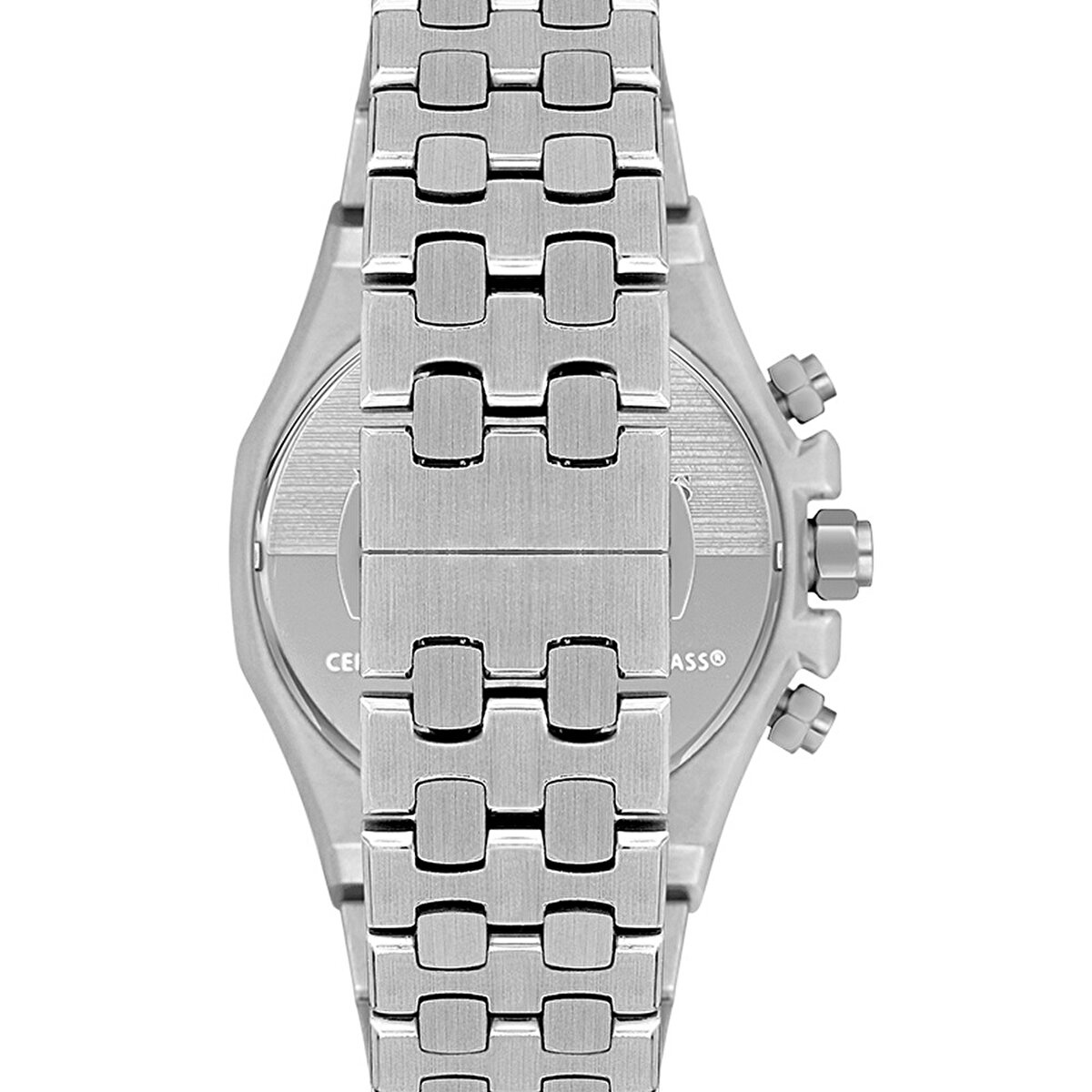 Multifonksiyon quartz mekanizması ile donatılan saat, fonksiyonel yapısıyla zamanı daha verimli takip etmenize olanak tanır. Seramik safir kaplamalı camı sayesinde çizilmelere ve darbelere karşı dayanıklıdır. 42 mm kasa çapı bilekte dengeli bir duruş sağlarken, 5 ATM su geçirmezlik özelliği ile günlük hayatta güvenle kullanılabilir.