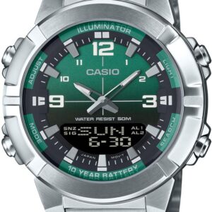 Güçlü tasarımı ve dikkat çekici detaylarıyla öne çıkan CASIO AMW-870DA-3AVDF, günlük kullanımda hem stil hem de fonksiyon arayanlar için tasarlandı. Çelik kasa ve kordon yapısı sağlamlığı zirveye taşırken, yeşil degrade kadranı modern ve karizmatik bir görünüm sunar.