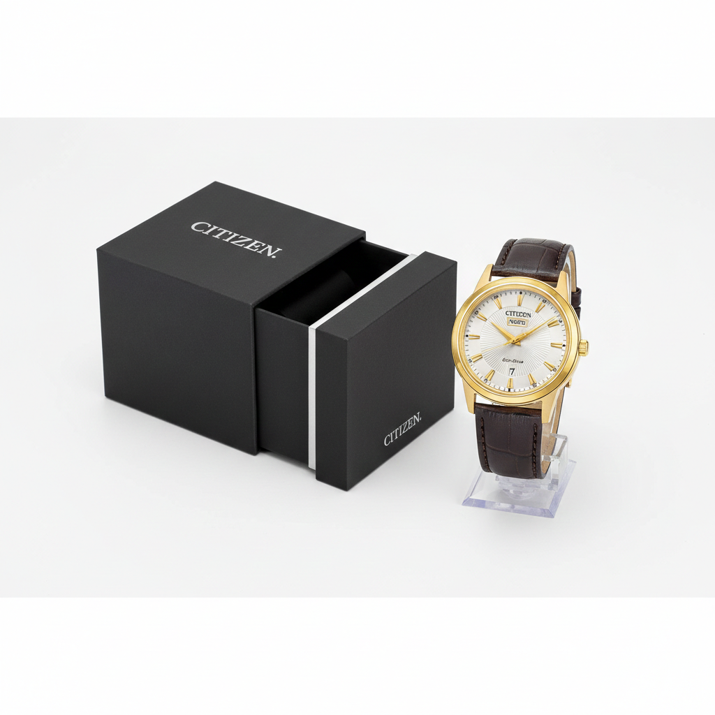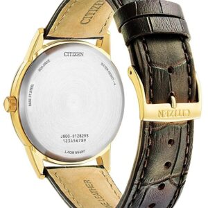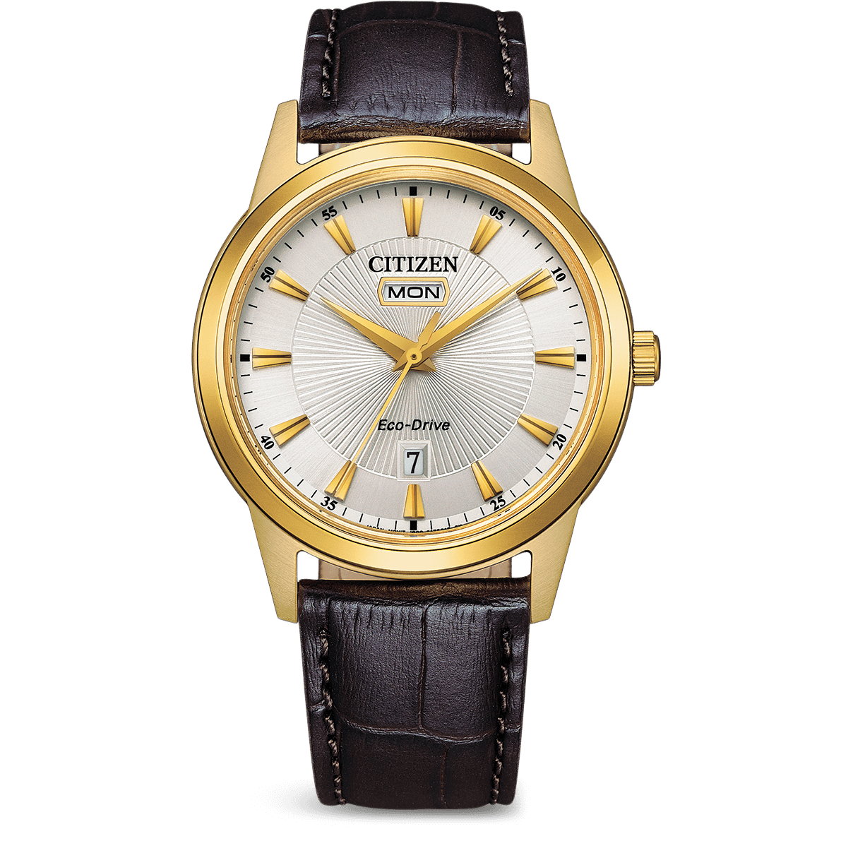 Klasik şıklığı modern bir dokunuşla tamamlayan Citizen AW0102-13AE, dikkat çeken sarı kasa rengi ve zarif kırık beyaz kadranı ile farkını ilk bakışta ortaya koyar. Citizen’in efsane Eco-Drive teknolojisi sayesinde ışıkla şarj olur ve pil değişimi gerektirmez; uzun yıllar sorunsuz kullanım sunar.