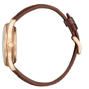 Krem tonlu şık kadranı ve altın kasa uyumu, saati hem günlük kullanım hem de özel davetler için ideal hale getirir. Kahverengi deri kayışı ile klasik şıklığı tamamlayan bu model, zamansız bir stil sunar.