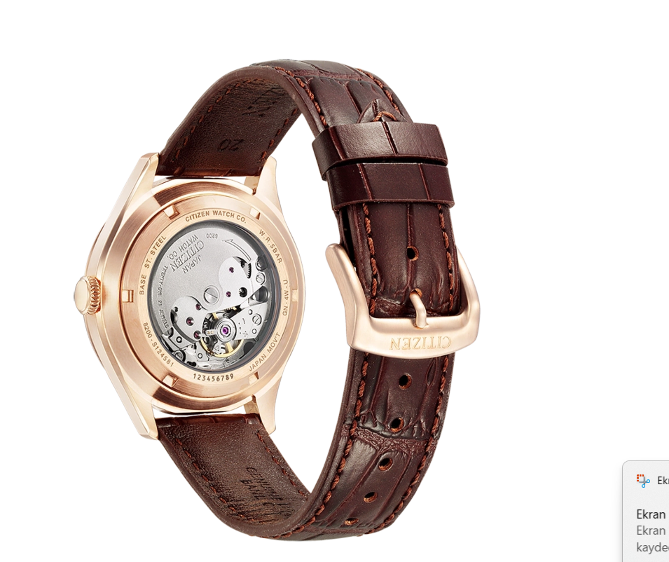 Citizen’in güvenilir 8200 kalibre otomatik mekanizması, pil gerektirmeden çalışır ve yaklaşık 42 saat güç rezervi sunarak performansıyla öne çıkar. Cam arka kapak tasarımı sayesinde mekanizmanın büyüleyici hareketini gözlemleyebilirsiniz.