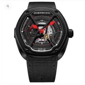 Güçlü tasarım dili ve mekanik estetiği bir araya getiren DIETRICH-OT-2 Organic Time, iskelet kadranı sayesinde otomatik mekanizmanın dinamizmini gözler önüne serer. Endüstriyel çizgileri, büyük kasa çapı ve sağlam malzemeleriyle modern erkek stilinin iddialı bir tamamlayıcısıdır.
