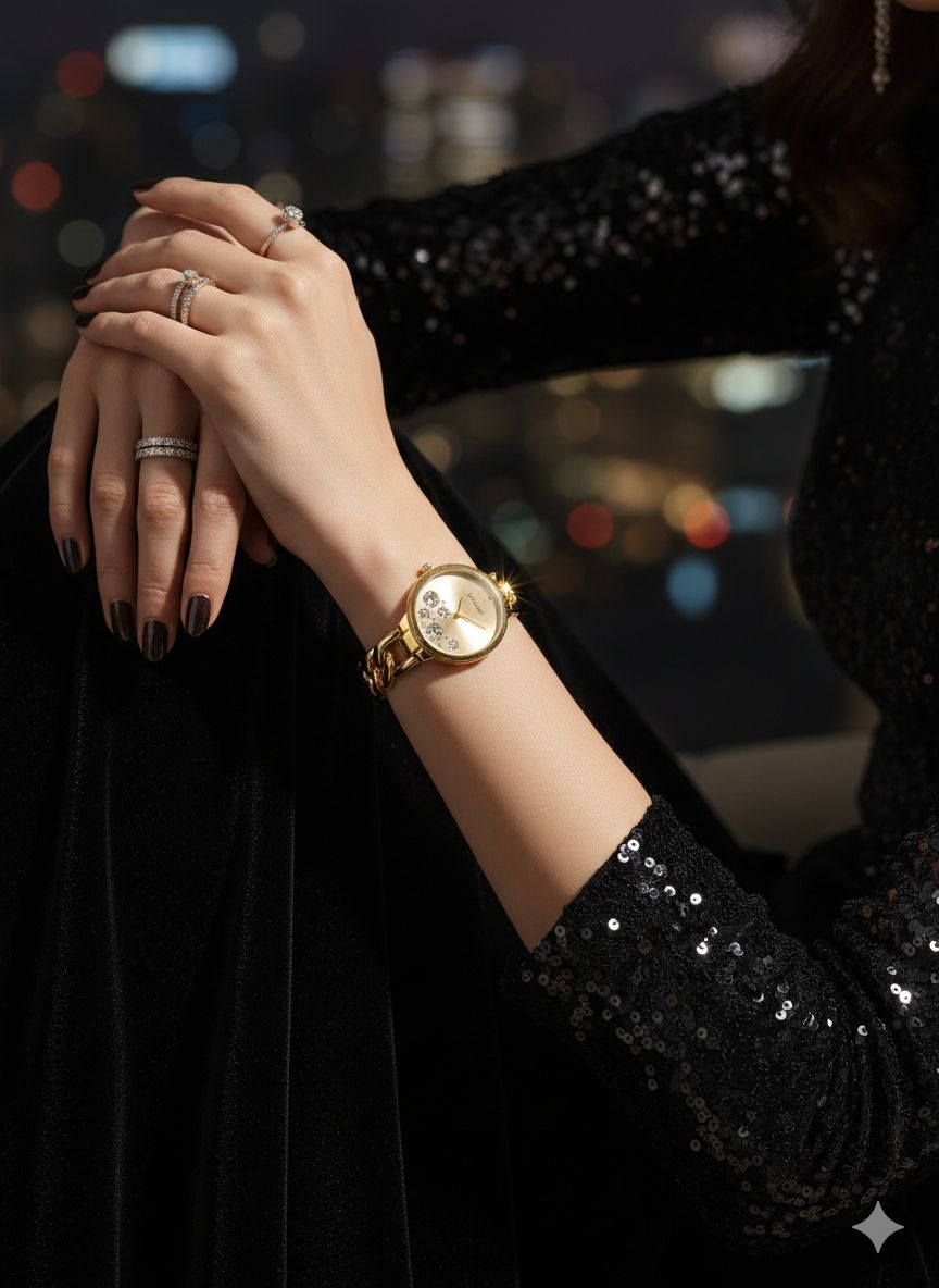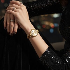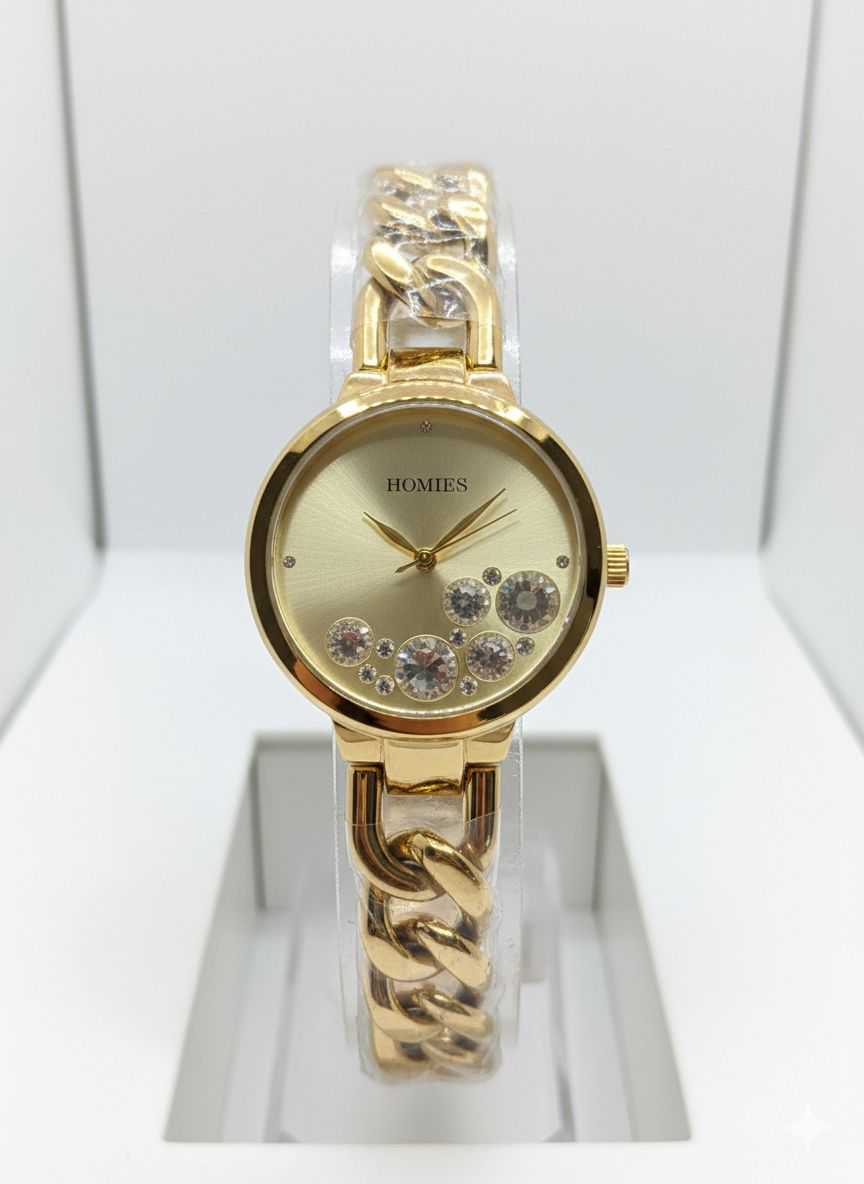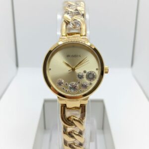 Şık detayları ve göz alıcı renk uyumu ile Homies HM23792S01-2, günlük ve klasik kombinleri kusursuz şekilde tamamlayan zarif bir kadın kol saatidir. Altın renk çelik kordon, saate modern ve sofistike bir duruş kazandırır. Gold kadranı modele lüx ve dikkat çekici bir stil katar.