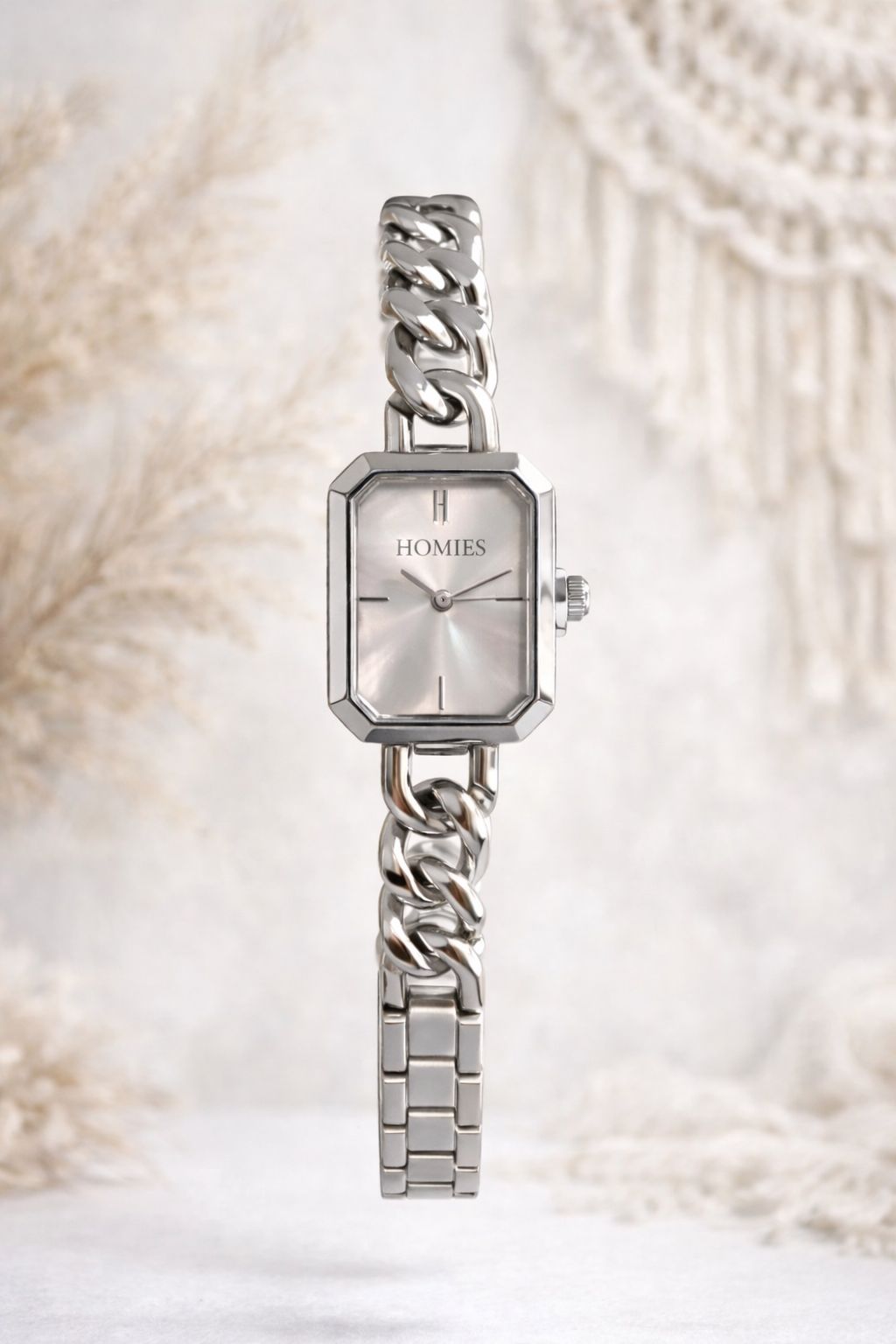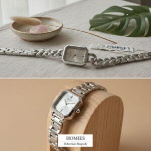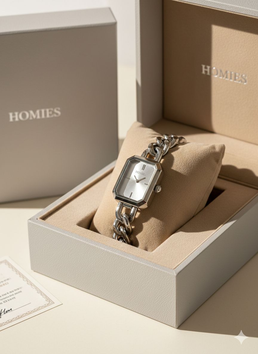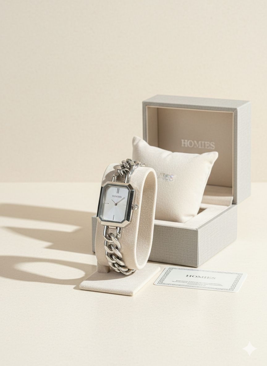 Minimal detayları ve gümüş tonlarının zarif uyumu ile öne çıkan HOMIES HM25194S01-1, günlük ve klasik kombinleri tamamlayan şık bir kadın kol saatidir. Çelik zincir kordonu ve sade metal kasası sayesinde bilekte zarif ve modern bir duruş sergiler.