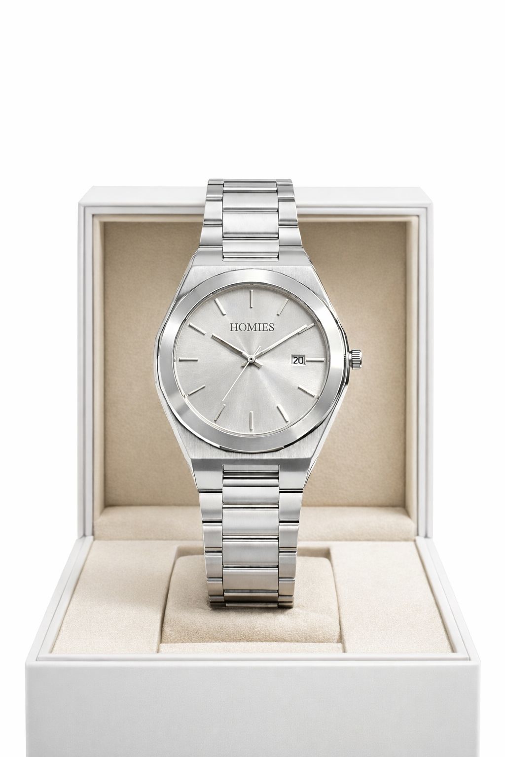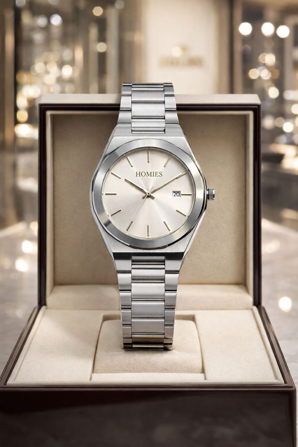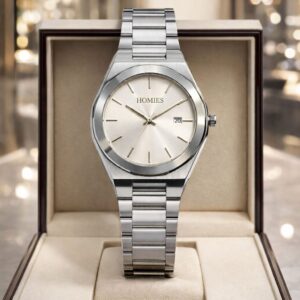 Minimal çizgileri ve slim gri kadran tasarımı ile öne çıkan HOMIES HM27083A01-4, modern erkek stilini tamamlamak için tasarlanmıştır. Gri çelik kasa ve kordonu sayesinde hem günlük kullanımda hem de klasik kombinlerde zarif bir duruş sergiler.
