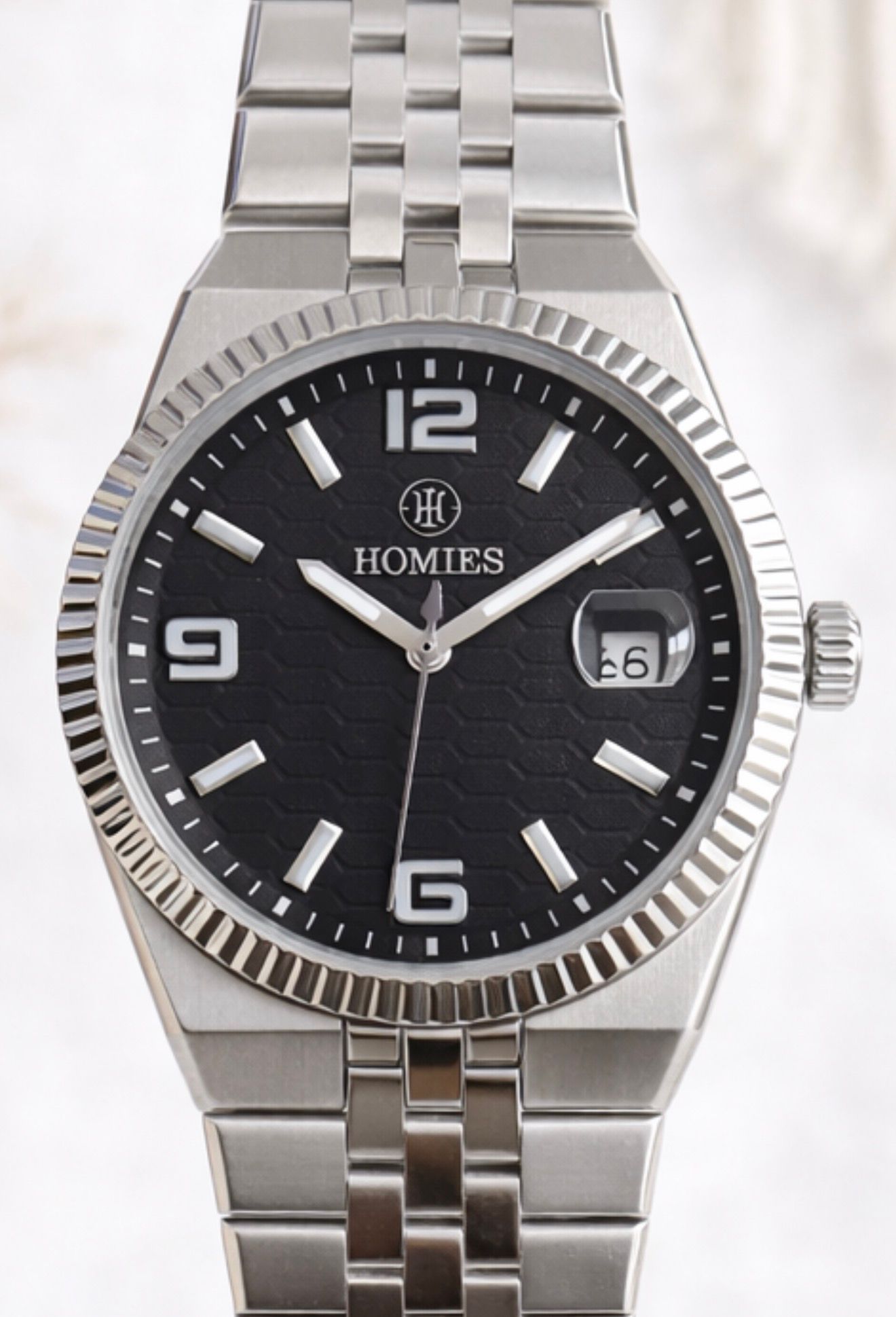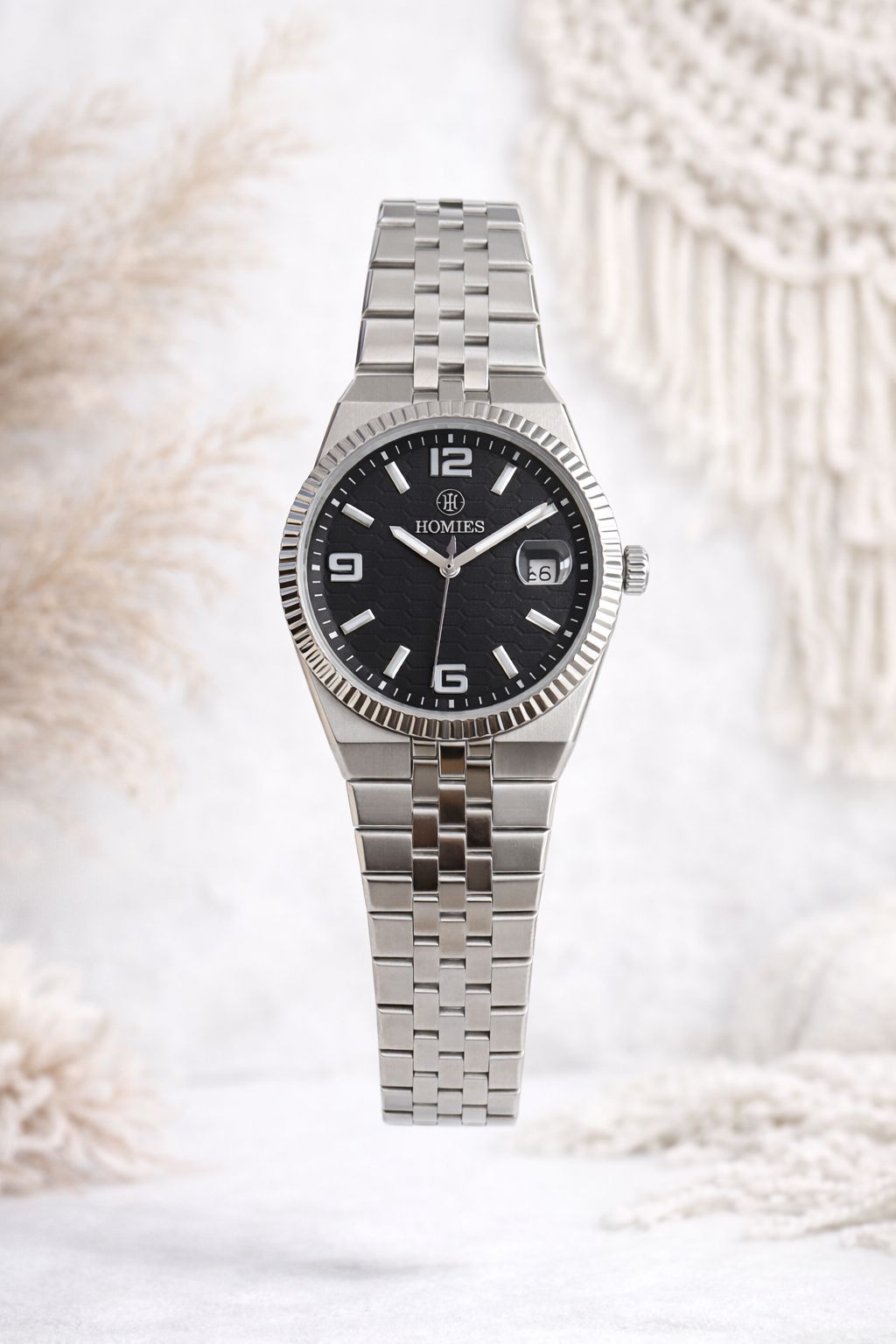 Modern tasarımı ve güçlü detaylarıyla öne çıkan HOMIES HM27287S01-1 sportif şıklığı klasik çizgilerle buluşturan özel bir erkek kol saatidir. Tırtıklı bezel yapısı saate karakteristik ve dinamik bir görünüm kazandırırken, SİYAH gofret kadranı derinlikli ve prestijli bir duruş sunar.