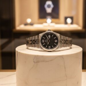 Jübile çelik kordonu, bilekte hem konforlu hem de dengeli bir kullanım sağlarken, şıklığı üst seviyeye taşır. Quartz (pilli) mekanizması ile hassas zaman ölçümü sunan bu model, Hardlex kristal camı sayesinde çizilmelere ve darbelere karşı ekstra dayanıklıdır. 43 mm kasa çapı, maskülen ve güçlü bir görünüm sağlar. 3 ATM su geçirmezlik özelliği günlük kullanıma uygundur.