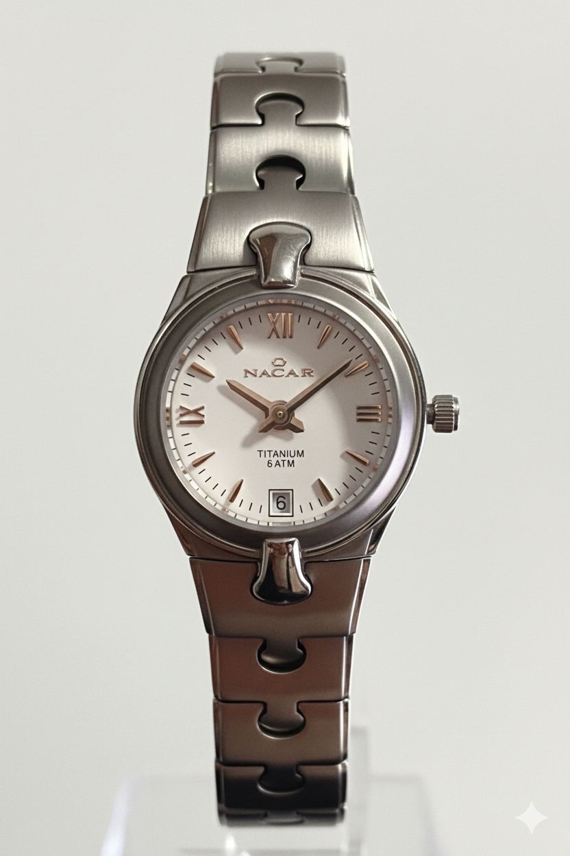 Zamansız tasarımı ve klasik detaylarıyla öne çıkan Nacar 03-394037 Kadın Kol Saati, vintage stilin modern yorumunu bileğinizde taşır. Roma rakamlı beyaz kadranı, titanyum kasa ve kordon yapısıyla hem zarif hem de hafif bir kullanım sunar. Günlük şıklık ve özel anlar için ideal bir tercihtir.