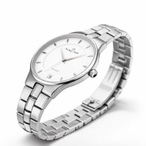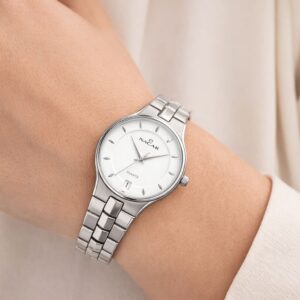 Saatçilik geleneğini 1929’dan bu yana sürdüren NACAR, zarif tasarımı ve güvenilir mekanizmasıyla kadın saatlerinde klasik şıklığı temsil ediyor. 20-291002 Precision Watch 1929 modeli; slim çelik kasası, beyaz kadranı ve gri çelik kordonu ile hem günlük kullanım hem de özel kombinler için ideal bir tercihtir.