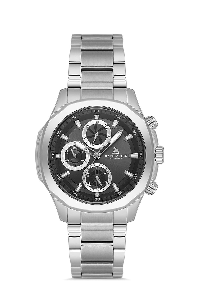 Modern erkekler için tasarlanan NAVIMARINE NAVI008-COL 1, şık görünümü ve fonksiyonel özellikleriyle dikkat çeker. Siyah kadranı, gümüş çelik kordonu ve güçlü mekanizmasıyla hem günlük kullanıma hem de özel davetlere uyum sağlar.