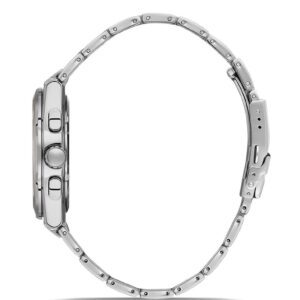 44 mm kasa çapı ile güçlü bir duruş sergileyen bu model, beyaz iç kadranın zarif görünümüyle sofistike bir şıklık sunar. Gümüş gri çelik kordon sağlamlık ve modernliği yansıtırken, kronograf fonksiyonlarıyla işlevsellik öne çıkar. VX9NE Quartz mekanizması sayesinde hassasiyet ve güvenilirlik her zaman sizinle.
