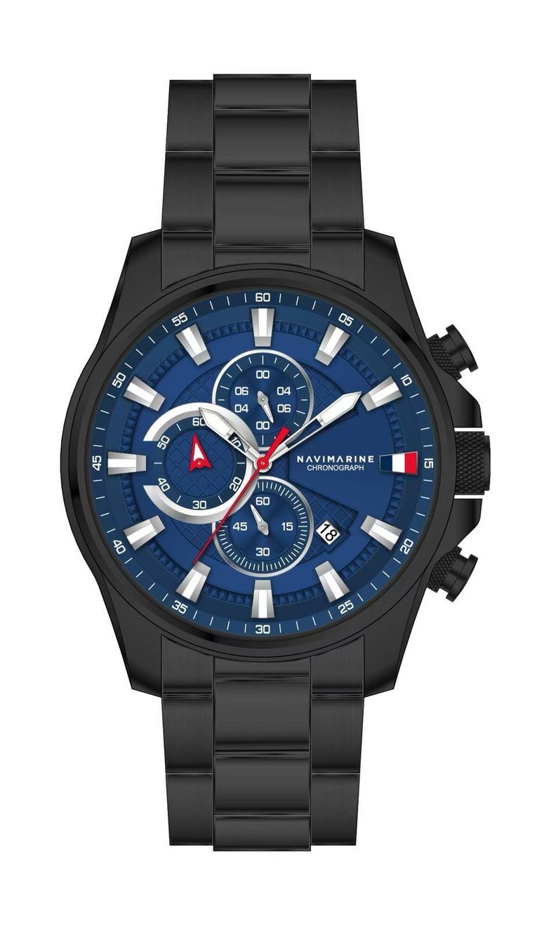 Lacivert kadranı ve uyumlu çelik kordonuyla zamansız bir şıklık sunar. Aktif çalışan kronograf fonksiyonu ve takvim özelliği sayesinde sadece şık değil, aynı zamanda işlevseldir. 44 mm kasa çapı ile güçlü bir duruş sergileyen NAVIMARINE NT0017-05, kaliteli Japon mekanizmasıyla hassasiyet ve güvenilirlik sağlar.
