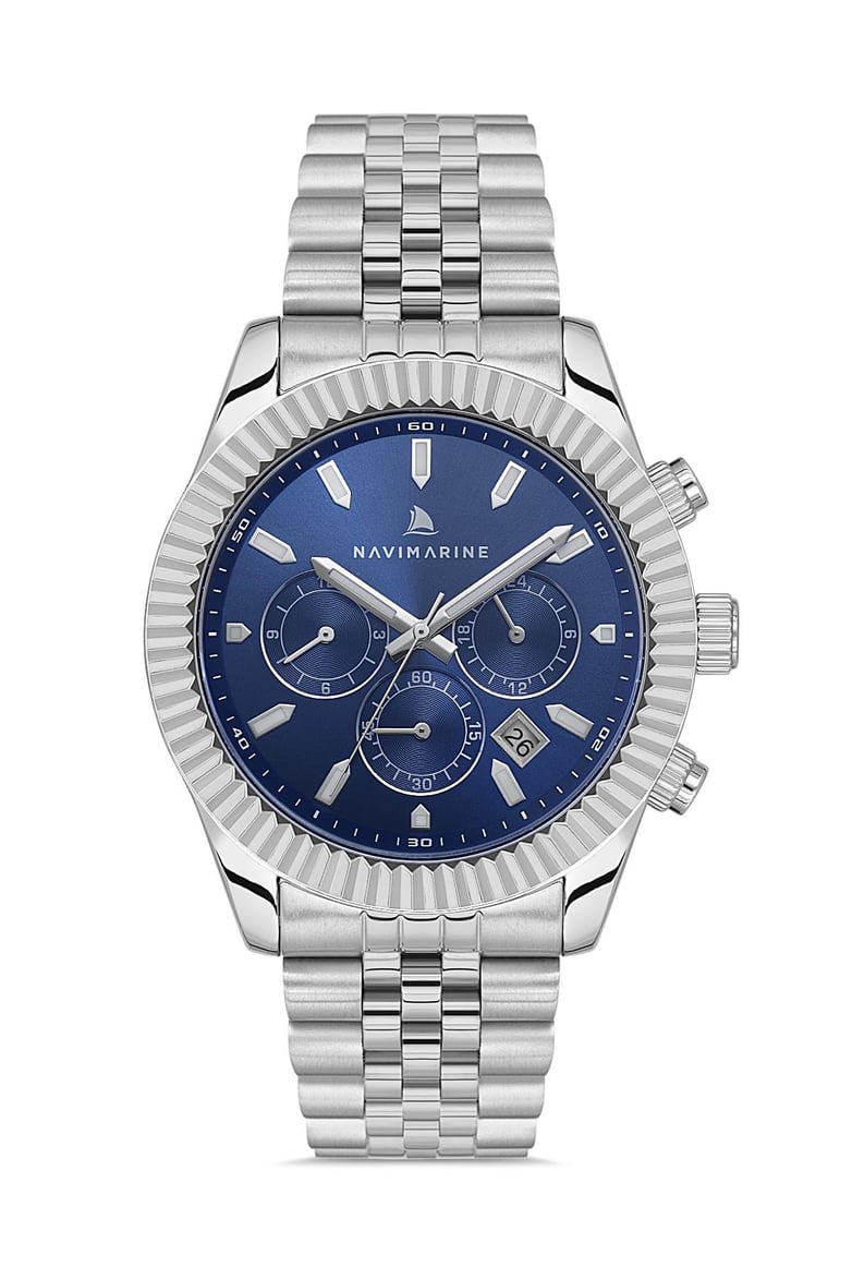Şıklık ve fonksiyonelliği aynı potada eriten NAVIMARINE NVM148-A3, modern erkeklerin stilini güçlendiren özel bir tasarıma sahiptir. Lacivert kadranı, tırtıklı bezeli ve kronograf özellikleriyle hem zarif hem de sportif bir görünüm sunar.