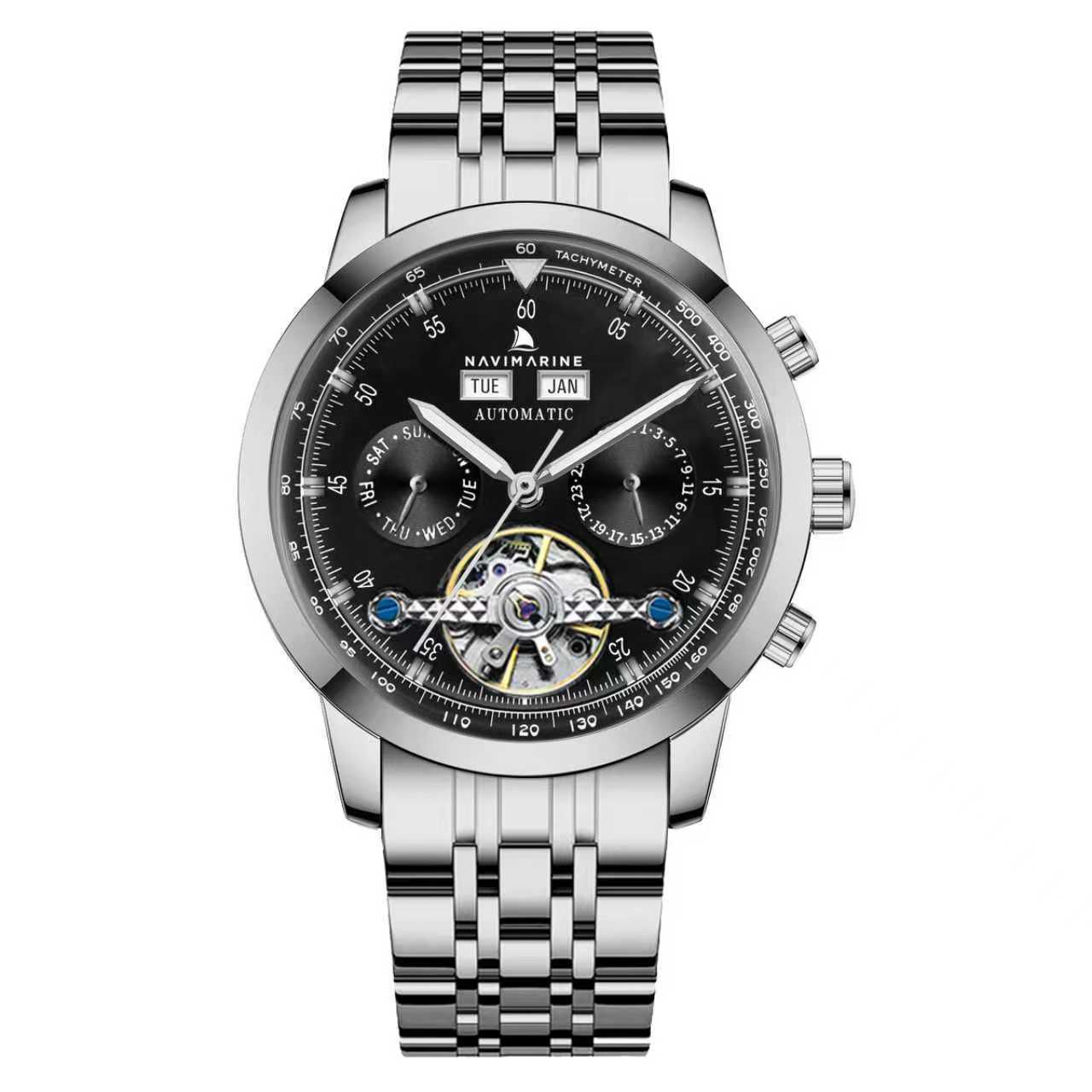 Lüks saatçiliğin zarafetini ve teknik üstünlüğünü yansıtan NAVIMARINE NVM2014, güçlü tasarımıyla modern erkeğin stilini tamamlıyor. Mehtaplı kadranı, tek Tourbillon detayı ve otomatik mekanizmasıyla yalnızca zamanı göstermekle kalmaz; aynı zamanda prestijli bir aksesuar kimliği taşır.