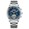 Siyah iç kadran üzerine işlenmiş mehtap tasarımı, saate eşsiz bir estetik kazandırırken, tek Tourbillon özelliği ileri saatçilik sanatını yansıtır. Gri gümüş çelik kordon ve paslanmaz çelik kasa sağlamlık ve şıklığı bir araya getirir. Otomatik mekanizması, kullanıcıya kesintisiz enerji ve uzun ömürlü performans sunar.