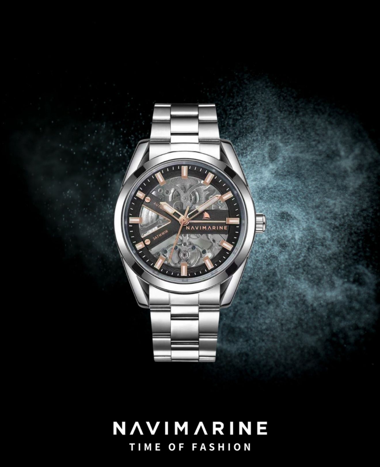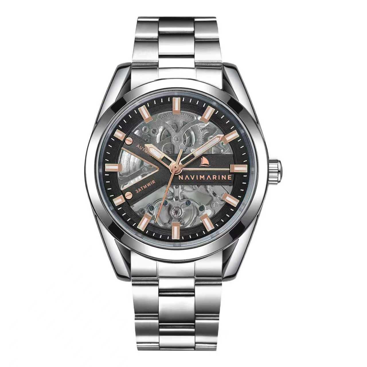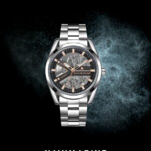 Mekanik estetiği ve lüks detaylarıyla öne çıkan NAVIMARINE NVM2013-02, saat tutkunları için özel olarak tasarlandı. İskelet siyah kadranı üzerinde öne çıkan rose gold detaylar, modele hem sofistike hem de modern bir görünüm kazandırıyor. Çalışma sistemi gözlemlenebilir yapısı sayesinde yalnızca zamanı göstermekle kalmaz, aynı zamanda eşsiz bir seyir zevki sunar.