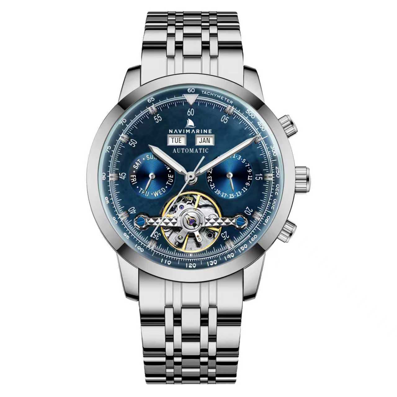Prestijli tasarımı ve ileri saatçilik detaylarıyla öne çıkan NAVIMARINE NVM2014, modern erkeğin şıklığını yansıtan özel bir modeldir. Lacivert mehtaplı kadranı ve tek Tourbillon özelliğiyle yalnızca zamanı göstermekle kalmaz; aynı zamanda zarafet ve gücün birleşimini temsil eder.