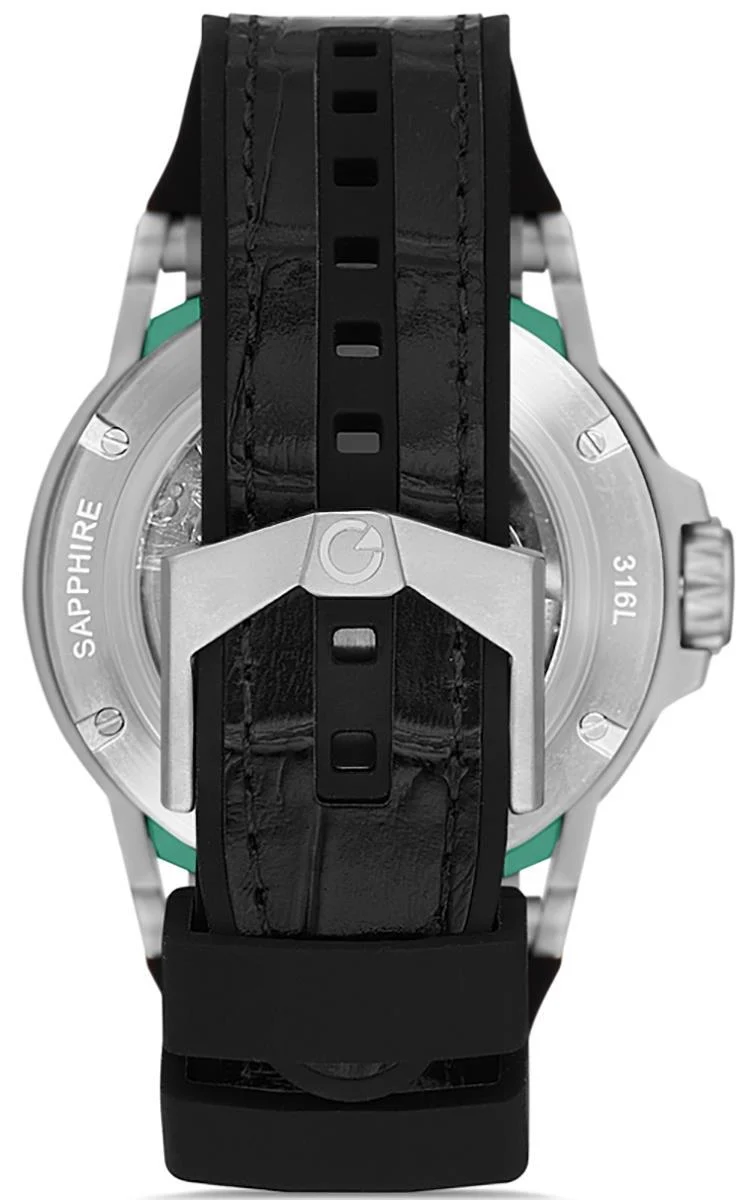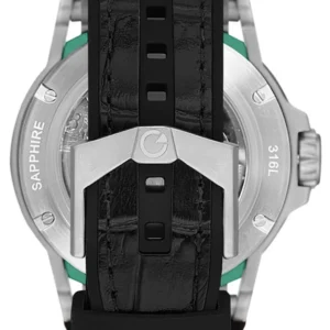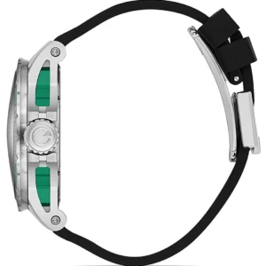 Dayanıklı çelik kasa ve çizilmelere karşı dirençli safir cam, saatin uzun yıllar sağlam ve net bir şekilde kullanılmasını sağlar. Siyah kadranı ve siyah renkli deri silikon kaplama kordonu, saate sportif ve modern bir görünüm kazandırır.