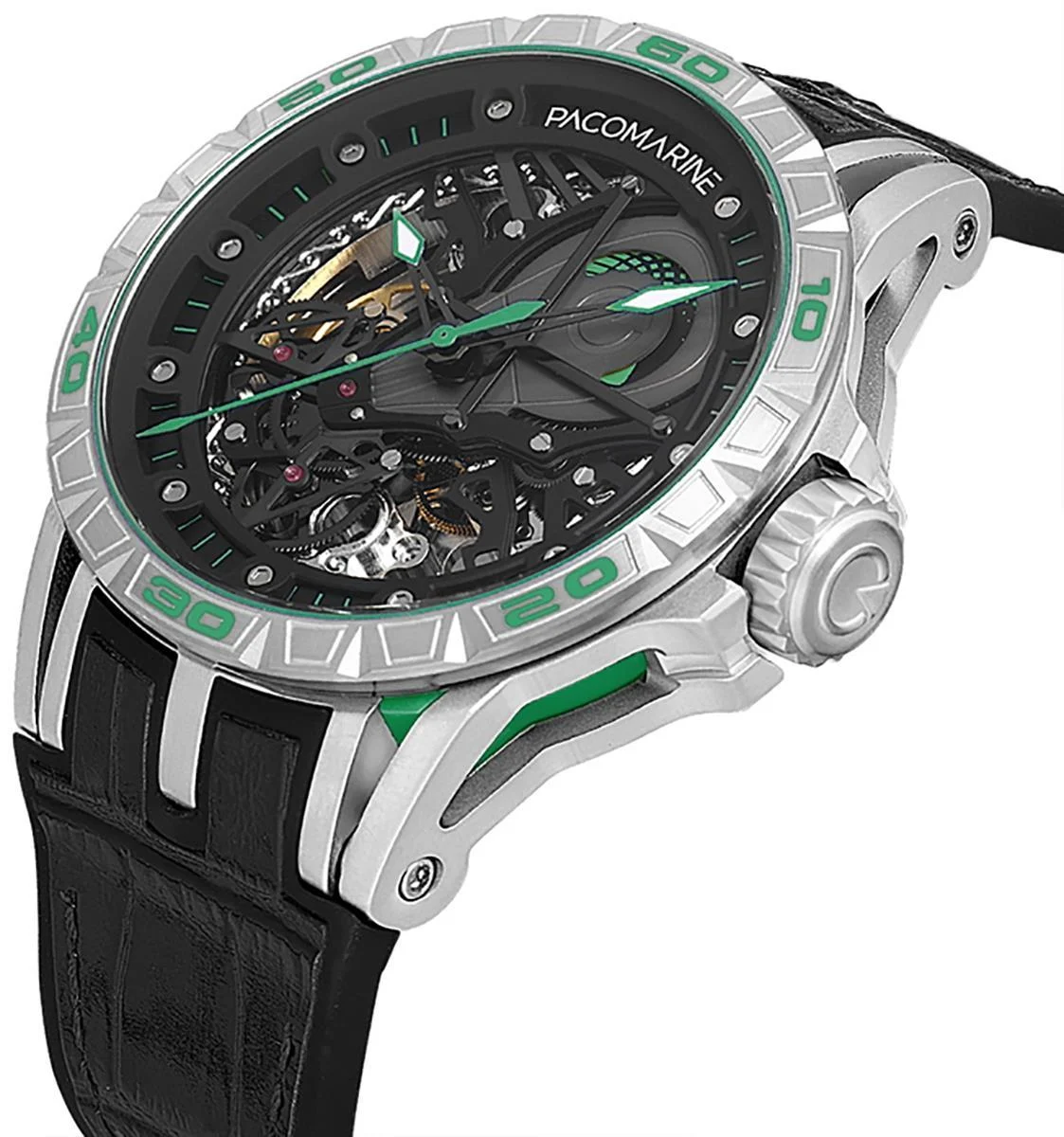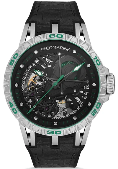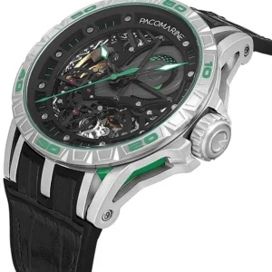 Pacomarine PM.20201.03, güçlü kasa yapısı, otomatik mekanizması ve modern siyah tasarımıyla hem günlük kullanım hem de sportif kombinler için ideal bir erkek kol saati modelidir.