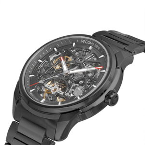 PACOMARINE PM.22156.03 Skeleton Otomatik Erkek Kol Saati, yüksek saatçilik estetiğini güçlü bir duruşla buluşturan özel bir modeldir. Siyah iskelet kadran, mekanizmanın tüm dinamizmini gözler önüne sererken tek tribülon yapısı sayesinde saati yalnızca bir aksesuar değil, izlenmesi keyif veren bir mühendislik eseri hâline getirir.