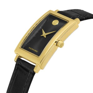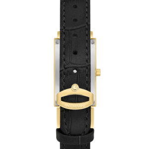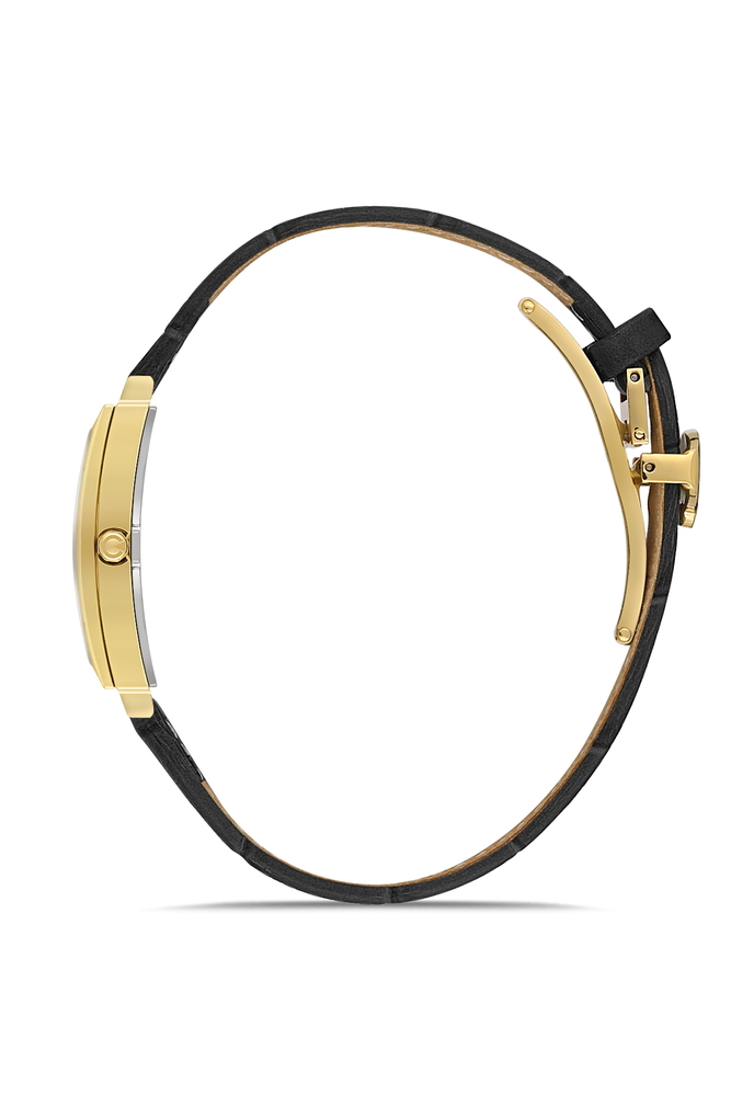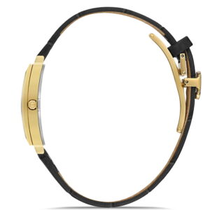 Siyah kadran, altın kasa ile güçlü bir kontrast oluşturarak net ve okunabilir bir görünüm sağlar. Sade kadran tasarımı, saatin zarafetini ön plana çıkarır ve her kombinle kolayca uyum sağlar.