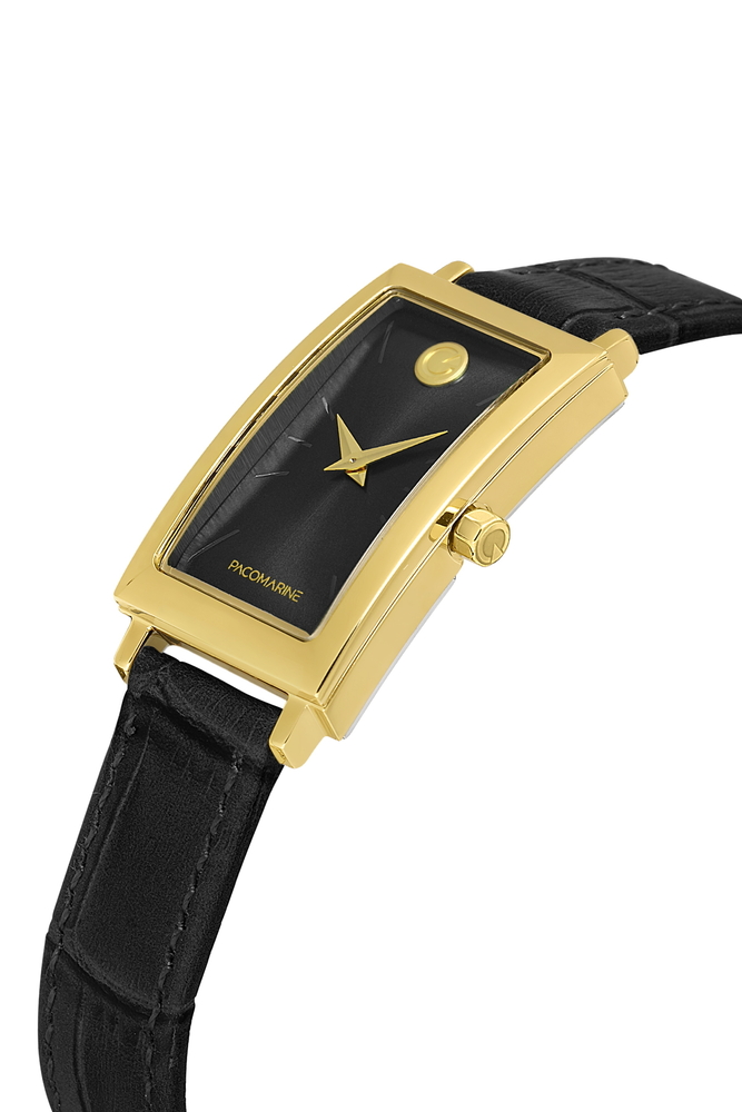 Minimal tasarımı, klasik renk uyumu ve zarif ölçüleriyle PACOMARINE PM.23203.03, şıklığı detaylarda arayan kadınlar için tasarlanmıştır. Altın kasa, siyah kadran ve siyah deri kordon birleşimi; saati hem günlük kullanımda hem de özel anlarda tamamlayıcı bir aksesuar haline getirir.