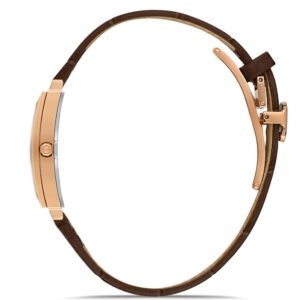 Kahverengi kadran, rose gold kasa ile kusursuz bir renk uyumu yakalayarak saatin estetik değerini yükseltir. Çok renkli genel tasarım yapısı, farklı kombinlerle rahatça uyum sağlamasına olanak tanır.