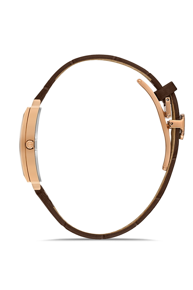 Saat kasasında kullanılan paslanmaz çelik, uzun ömürlü kullanım ve dayanıklılık sağlar. Rose gold kasa rengi, modele sıcak, sofistike ve modern bir hava kazandırır.