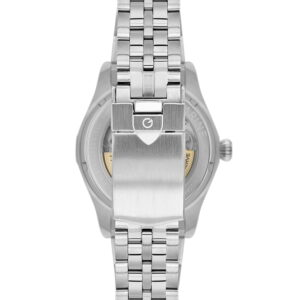 43 mm metalik çelik kasa, bilekte güçlü ve maskülen bir duruş sağlarken gümüş renkli çelik kordonla bütünleşerek zamansız bir görünüm oluşturur. Otomatik mekanizma, pil ihtiyacı olmadan bilek hareketiyle çalışır ve gerçek saat tutkunlarına hitap eder. Safir cam arka kapak, mekanizmanın çalışmasını izleme keyfi sunarak saate ayrı bir prestij katar.