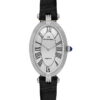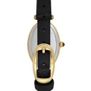 21 mm kasa çapı, ince bilekler için ideal ölçü sunar ve saatin bilekte zarif, takı hissi veren bir duruş sergilemesini sağlar. Oval kasa formu, klasik yuvarlak saatlerin dışına çıkarak modele feminen ve özgün bir karakter kazandırır.