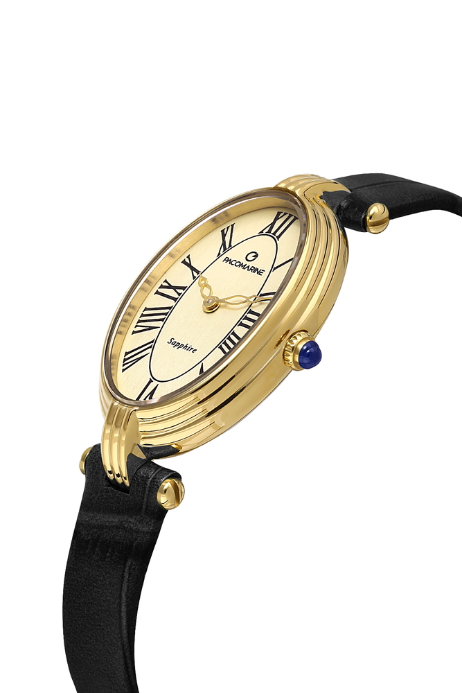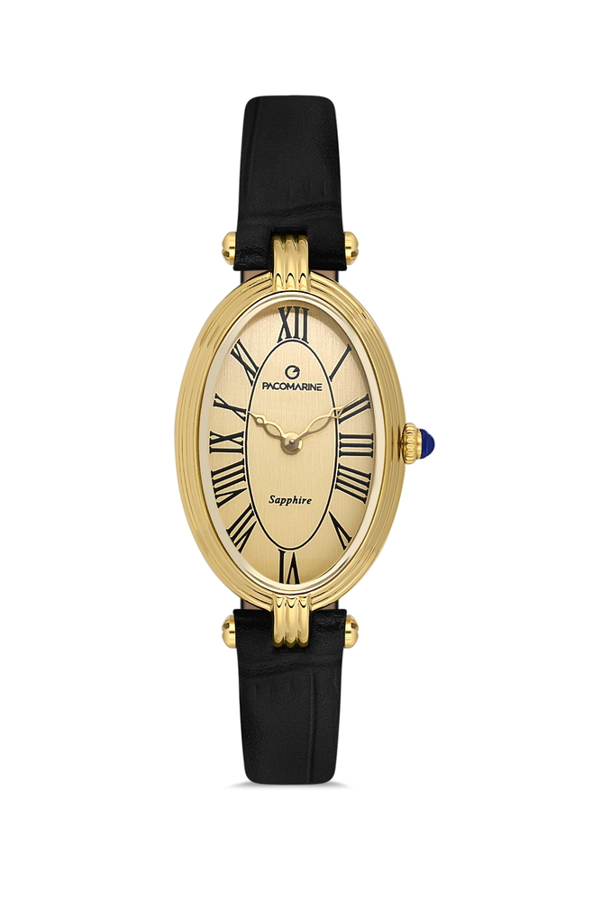 Zarafeti ön planda tutan kadınlar için özel olarak tasarlanan PACOMARİNE PM.23210.03, minimal ölçüleri ve sofistike renk uyumuyla klasik şıklığı modern detaylarla birleştirir. Altın rengin asaleti, siyah deri kordonun güçlü kontrastı ile buluşarak hem gündüz hem de gece kombinlerine kusursuz şekilde uyum sağlar.