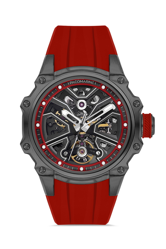 Cesur tasarımı, mekanik gücü ve sportif karakteriyle öne çıkan PACOMARİNE PM.24501.03, sıradanlıktan uzak durmak isteyen erkekler için tasarlandı. İskelet kadranı sayesinde otomatik mekanizmanın tüm dinamizmi bileğinizde hayat bulur.
