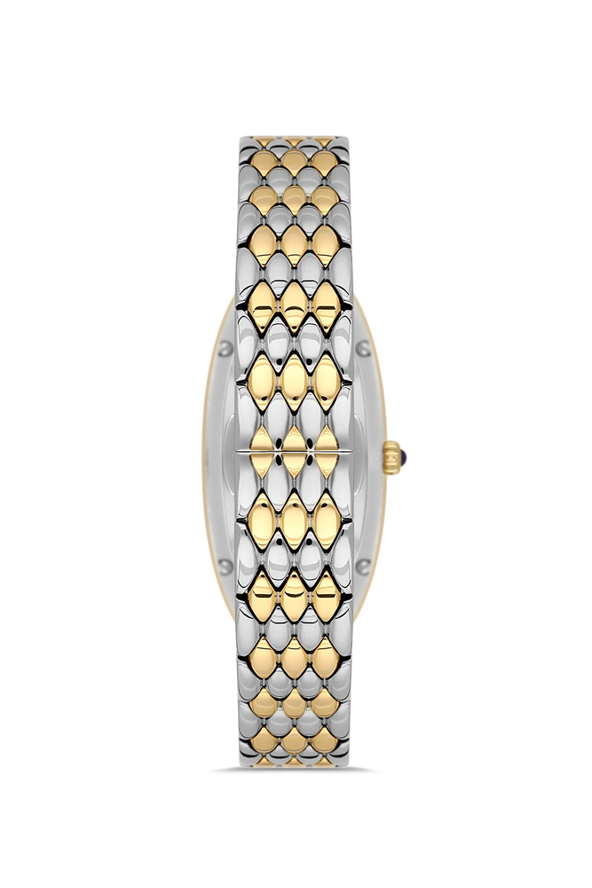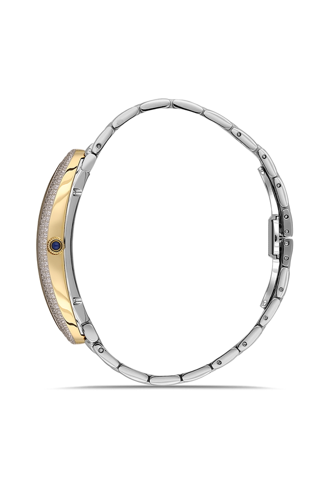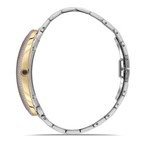 Altın renkli çelik kordonu, gri kasa ile dengeli bir kontrast oluşturarak hem klasik hem modern kombinlere kolayca uyum sağlar. 24 mm kasa çapı, ince bilekler için ideal ölçü sunarken analog kadran tasarımı zamansız bir estetik kazandırır.
