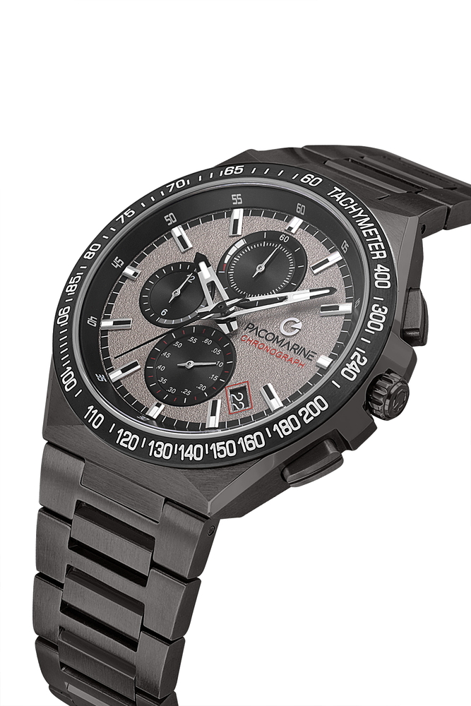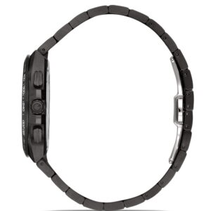 Sütlü Kahve  kadran, siyah kasa ve çelik bilezik kombinasyonu modern ve sofistike bir kontrast oluşturur. 43 mm kasa çapı bilekte dengeli bir duruş sağlarken, kronograf detayları sportif karakteri güçlendirir. Safir cam sayesinde çizilmelere karşı dayanıklıdır ve uzun yıllar netliğini korur.