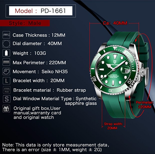 Pagani Design PD-1661 Submariner Otomatik Erkek Kol Saati – Dalgıç Stili