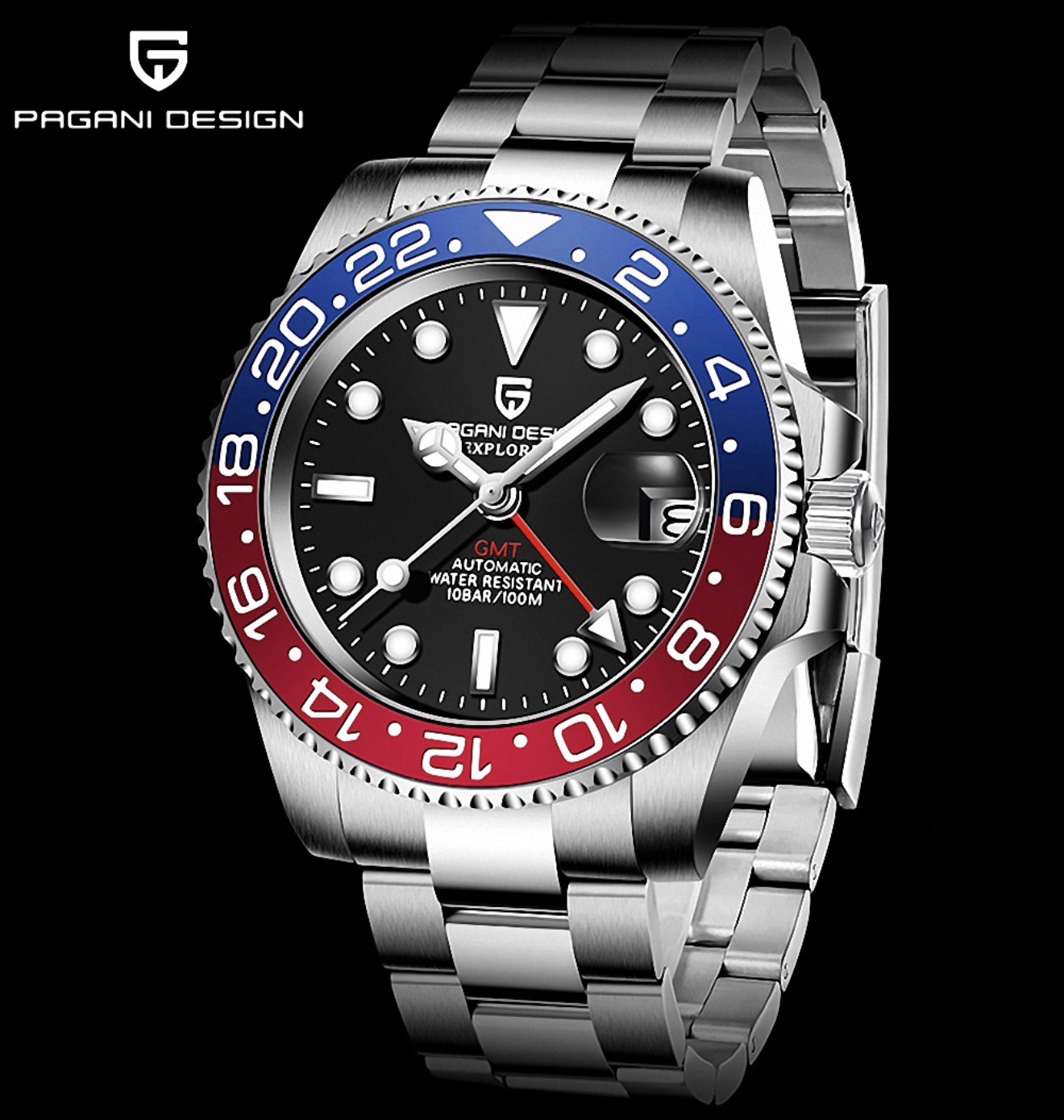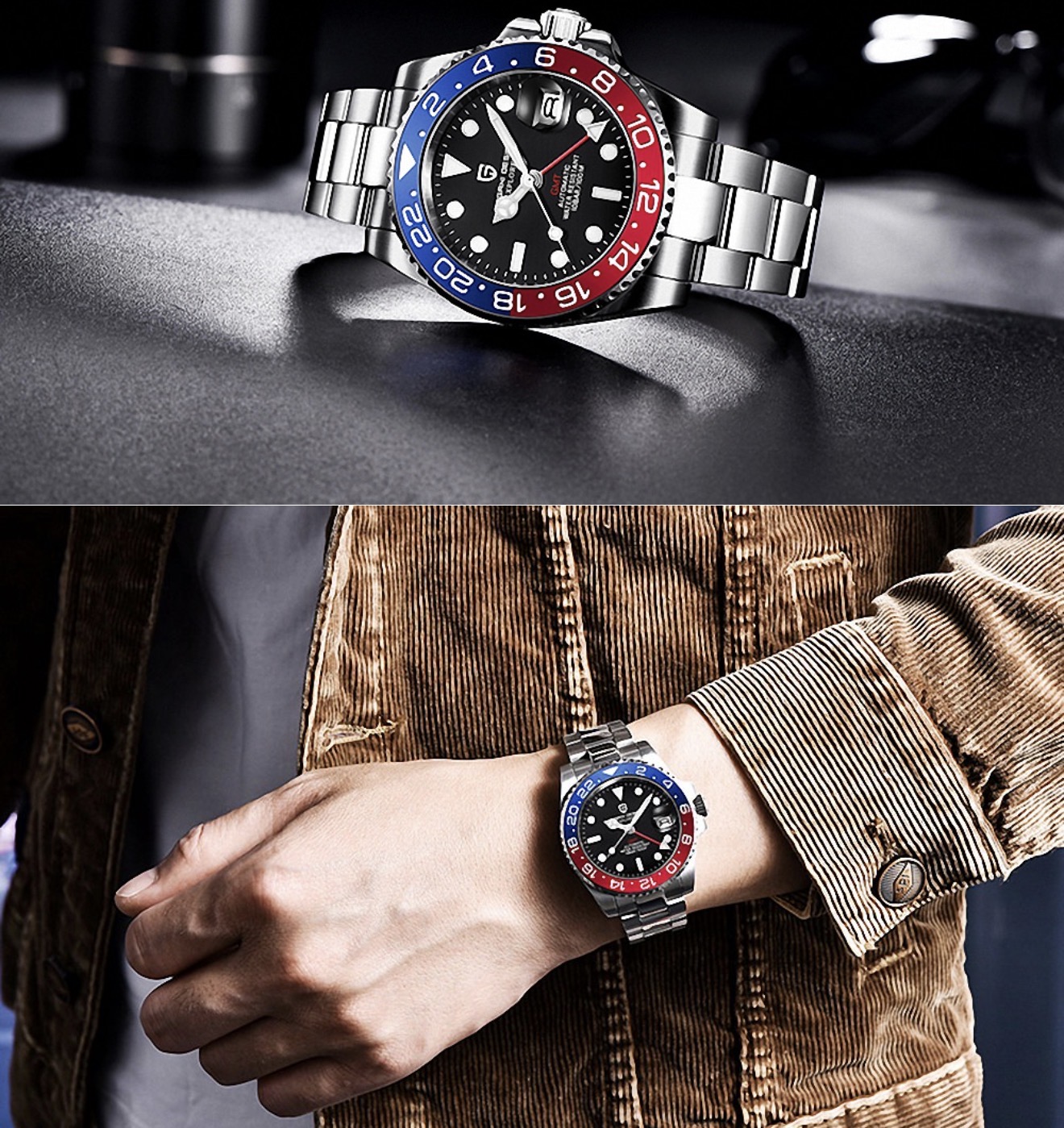 Pagani design PD-1662 GMT-MASTER Erkek Otomatik Kol Saati – Kırmızı Mavi