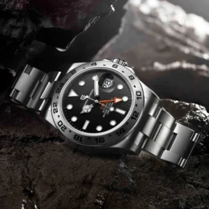 Explorer II tasarımından ilham alan bu model; GMT fonksiyonu sayesinde aynı anda iki farklı saat dilimini takip etme imkanı sunar. Günlük kullanım, iş hayatı ve seyahatler için hem fonksiyonel hem de dikkat çekici bir seçenektir.