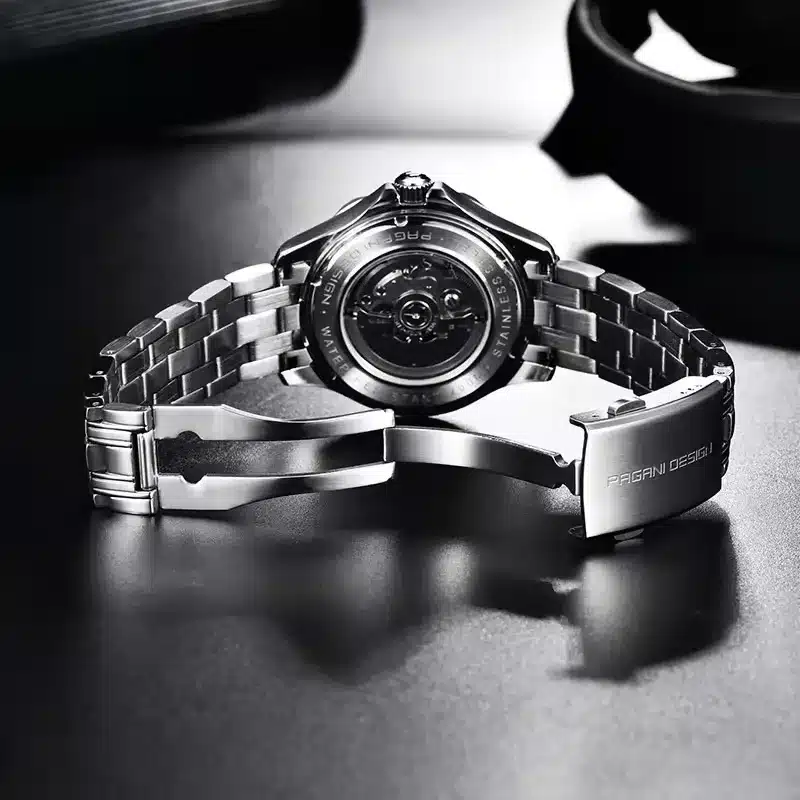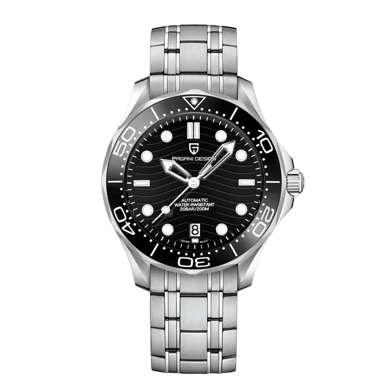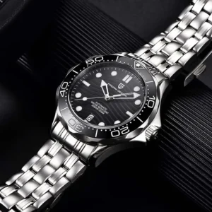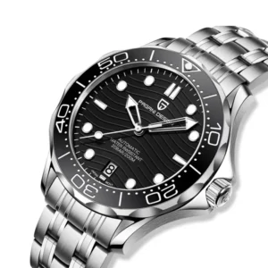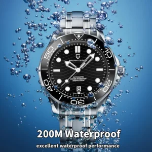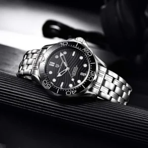 Güçlü duruş, profesyonel dalış ruhu ve günlük şıklık… Pagani Design PD-1685, klasik diver saat tasarımını modern detaylarla buluşturarak hem sportif hem de prestijli bir kullanım sunar. Japon otomatik mekanizması, seramik bezeli ve 200 metre su geçirmezliği ile performans ve estetiği bir araya getirir.