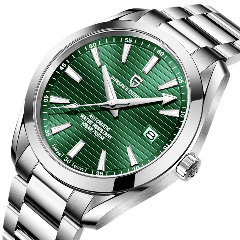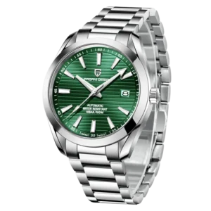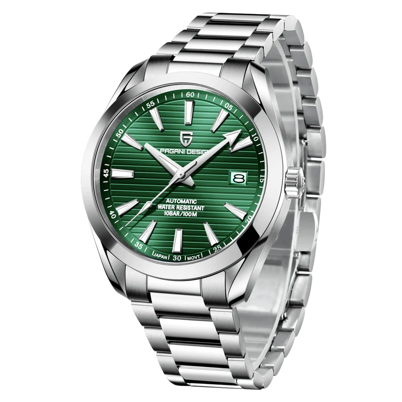 Zarif çizgiler, güçlü mekanizma ve günlük şıklık… Pagani Design PD-1688 Aqua Terra, klasik saat tasarımını modern detaylarla buluşturarak hem sportif hem de şık bir kullanım sunar. 40 mm ideal kasa çapı, safir camı ve Japon NH35A otomatik mekanizmasıyla her ortamda güven veren bir tercihtir.