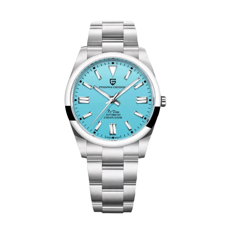 Canlı turkuaz kadranı, kompakt kasa ölçüsü ve güçlü otomatik mekanizmasıyla Pagani Design PD-1690, sade ama dikkat çekici bir stil sunar. Klasik Oyster tarzını modern detaylarla buluşturan bu model; hem günlük kullanımda hem de şık kombinlerde fark yaratmak isteyenler için ideal bir tercihtir.