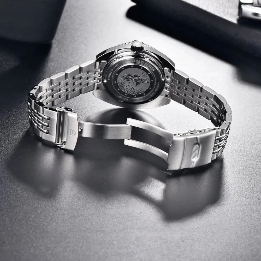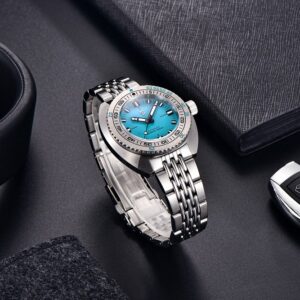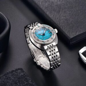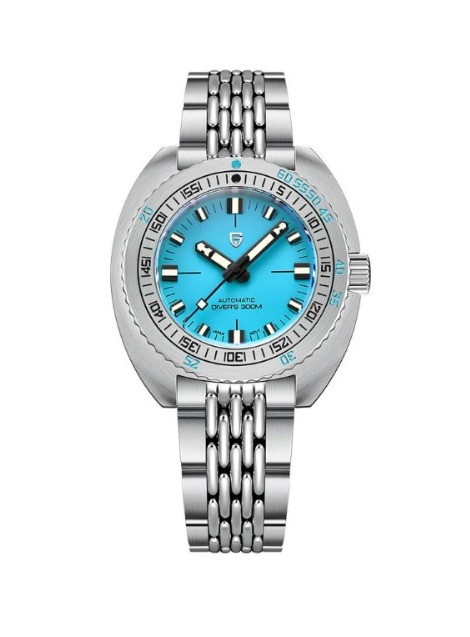 Pagani Design PD-1719 Turkuaz, güçlü dalgıç karakteri, sağlam yapısı ve dikkat çekici renk tasarımıyla hem günlük kullanım hem de saat koleksiyonları için ideal bir otomatik saat modelidir.