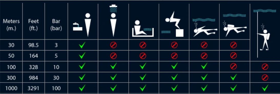 🌊 990 ft / Yaklaşık 300 m Suya Dayanıklılık