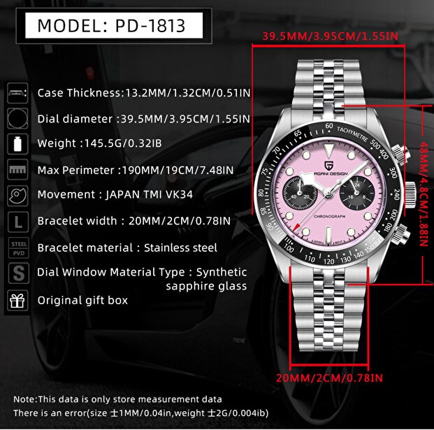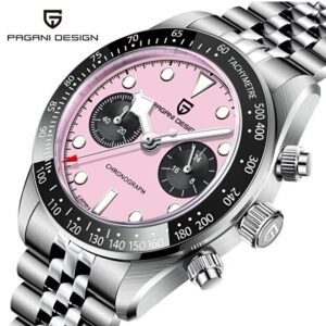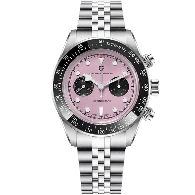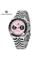 Modern çizgilerle güçlü teknik detayları bir araya getiren Pagani Design PD-1813, pembe kadranıyla fark yaratırken Japon mühendisliğinin güvenilirliğini bileğinize taşır. Günlük kullanımdan özel anlara kadar stilinizi tamamlayan bu kronograf, performans ve estetiği dengeli biçimde sunar.