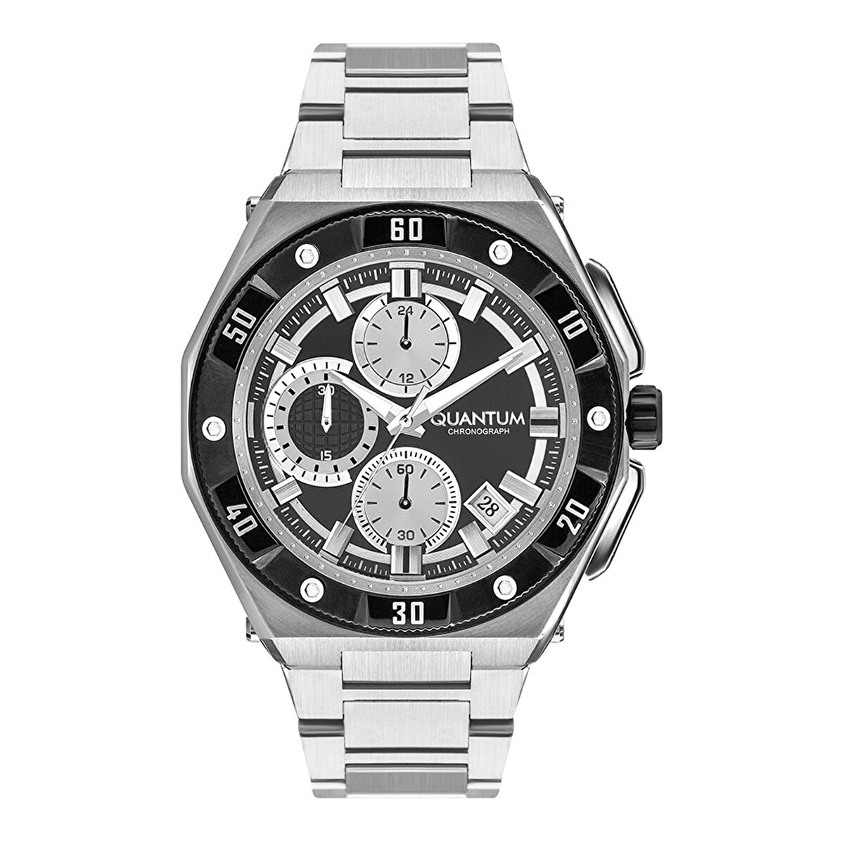 Quantum Caliber VR33, klasik çelik tasarımı modern kronograf detaylarla harmanlayarak her ortamda fark yaratır. Göz alıcı yapısı ve güvenilir performansıyla, stiline önem veren erkeklerin vazgeçilmez tercihidir.