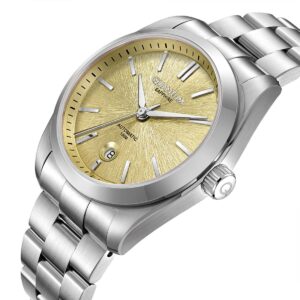 Otomatik mekanizması, bilek hareketiyle enerji depolayarak pil gerektirmeden çalışır. Safir camı ve paslanmaz çelik yapısı sayesinde günlük kullanıma uygun, uzun ömürlü bir dayanıklılık sunar.